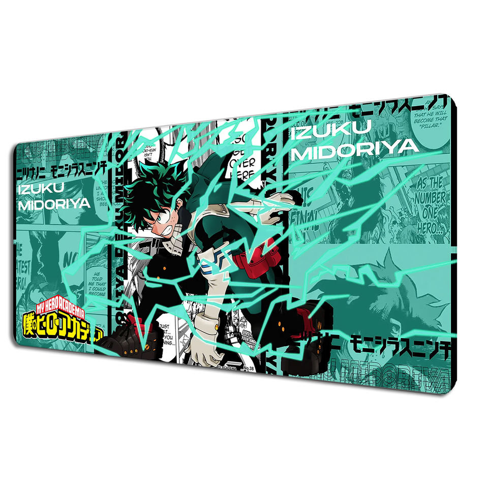 Green Haired Hero Plus Ultra Style Extended Gaming Desk Pad for Anime Fans Mouse Mat 90x40 80x30 XXL