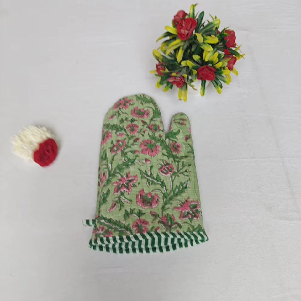 Mitaines de four matelassées en coton imprimé vert avec bord passepoil Tapis de table pour la maison Ameublement Genre de produits