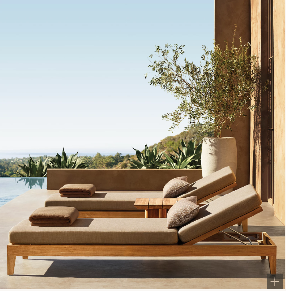 Chaises longues d'extérieur en teck massif de conception moderne artisanale verte avec coussin imperméable pour jardin, patio, piscine, hôtel