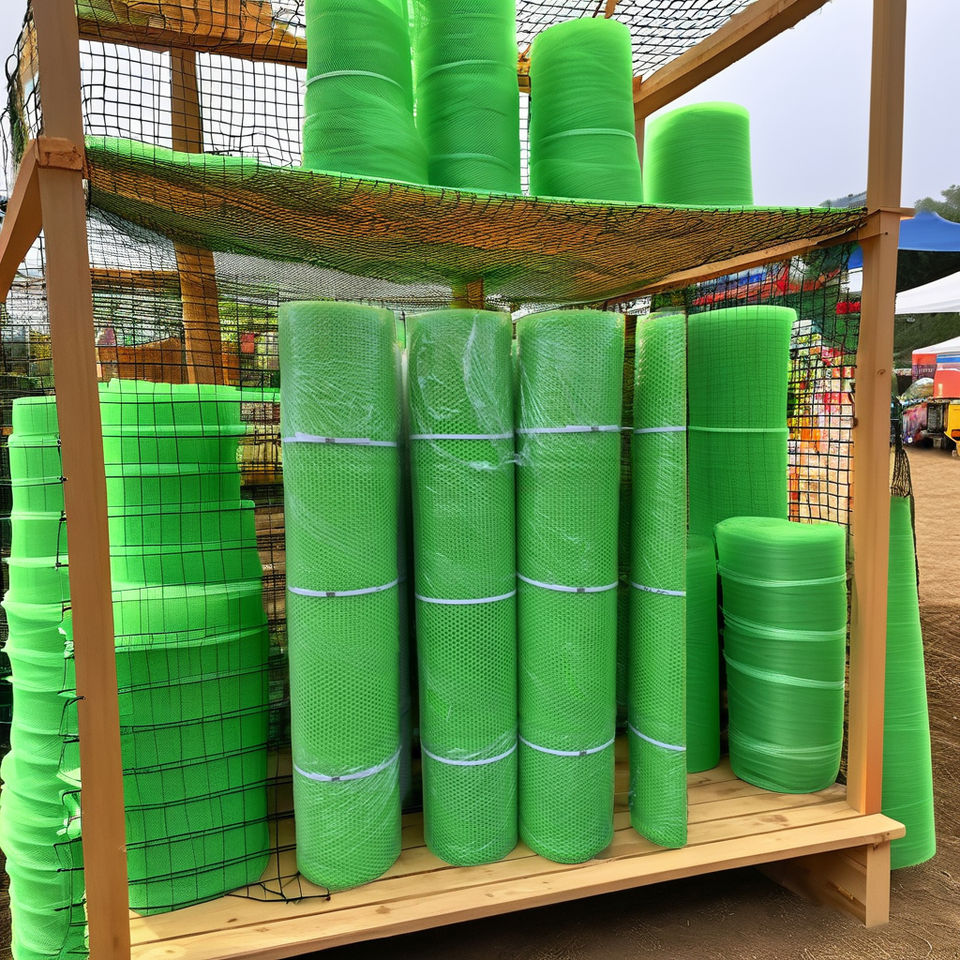 Filet à lamelles en plastique extrudé de qualité alimentaire en plastique rigide dur vert pour filet de volaille de poulet et utilisation de porcelet