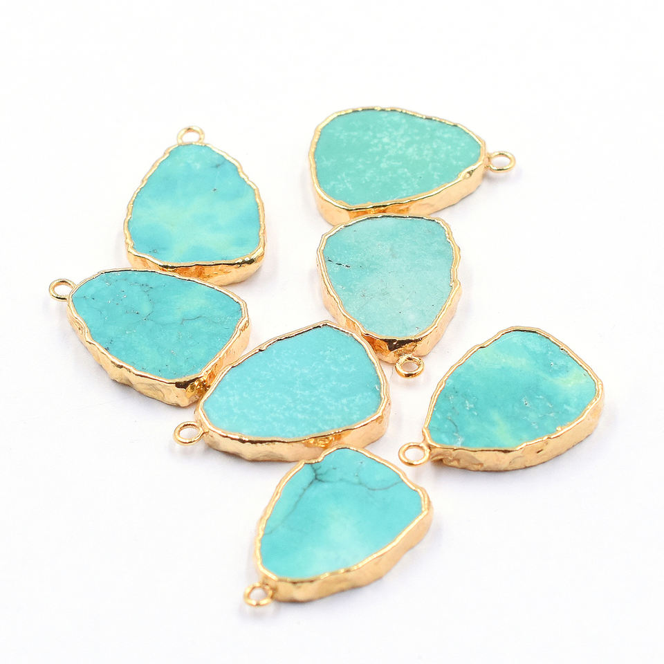 Pendentif en Howlite verte 20 mm avec anse en forme de poire, plaqué or.