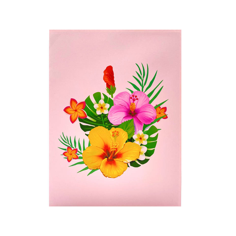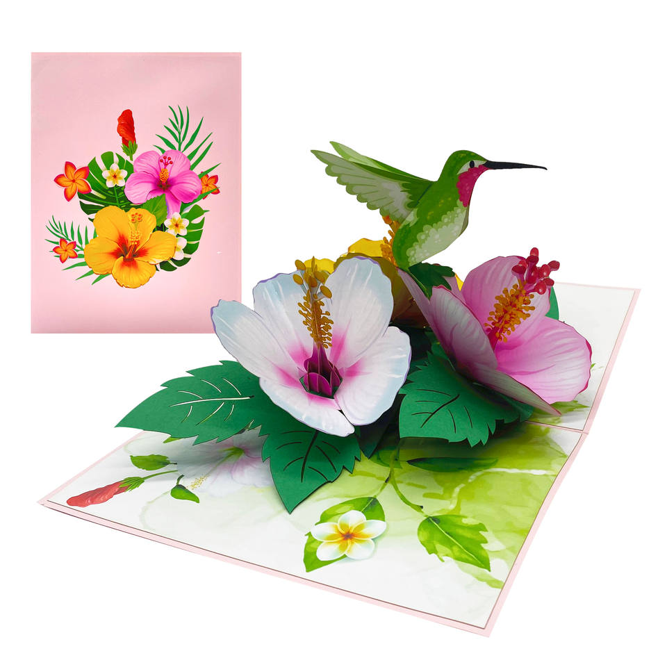 Carte Pop Up 3D Colibri vert et Hibiscus