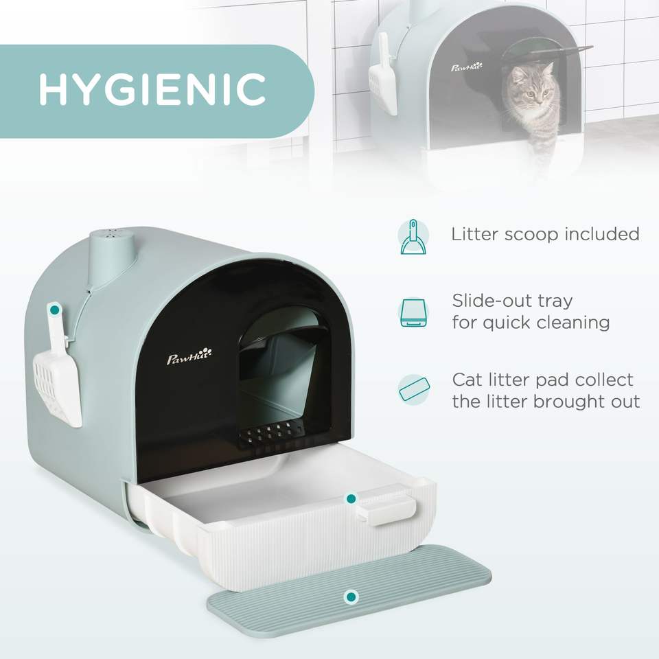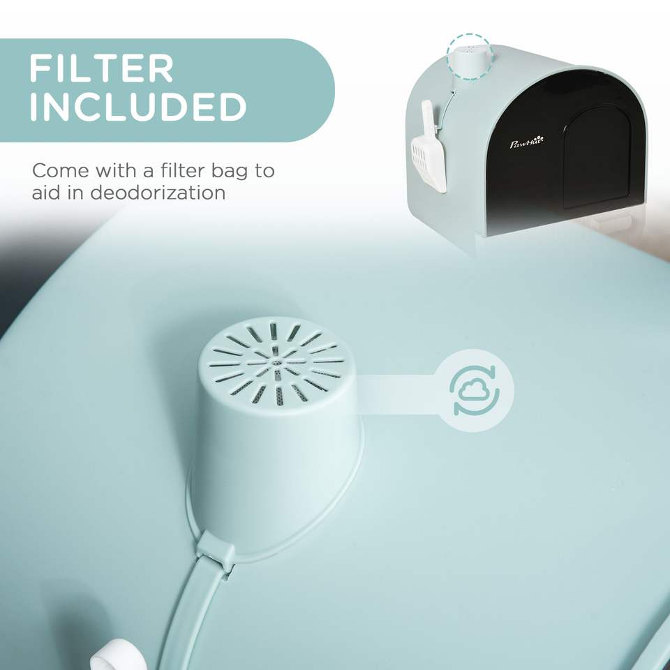 Bac à litière pour chat intérieur vert avec couvercle 17"x17"x18.5" et accessoire de bac filtrant avec pelle