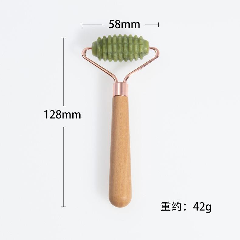 Green Jade Roller with Wooden Handle for Skincare Anti-Aging Cool Face/Neck/Body Massage Tool Luxury Facial Spa Equipment