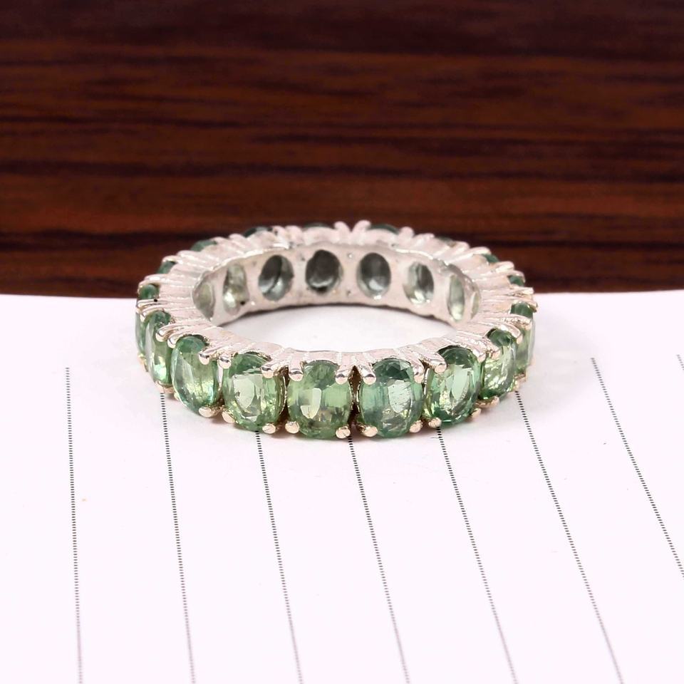 Nom:Bague de mariage en argent sterling 925 avec cyanite verte naturelle