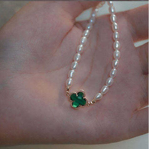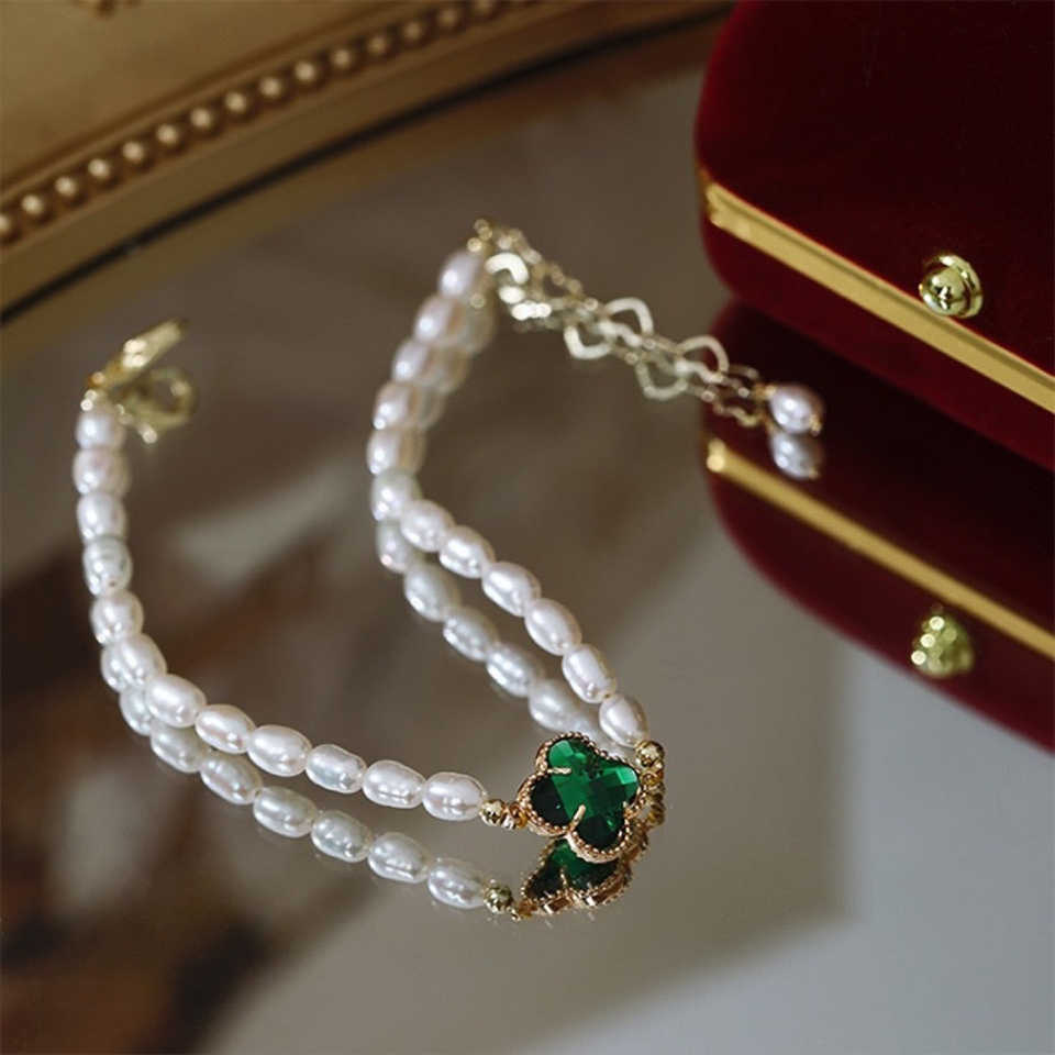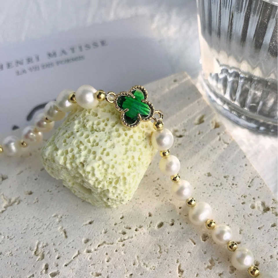 WENCHI Green Leaf Petal Bracelet for Women Summer Collection Freshwater Pearl 5-6mm 30g Mori Jewelry New and Natural