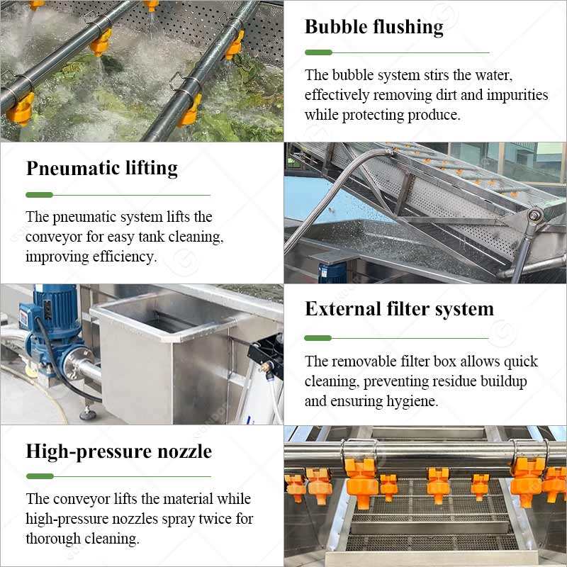 Machine de lavage et de nettoyage commerciale pour légumes, fruits (laitue verte, avocat, poivron bulle, mangue) et piments