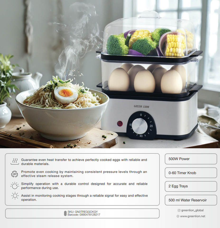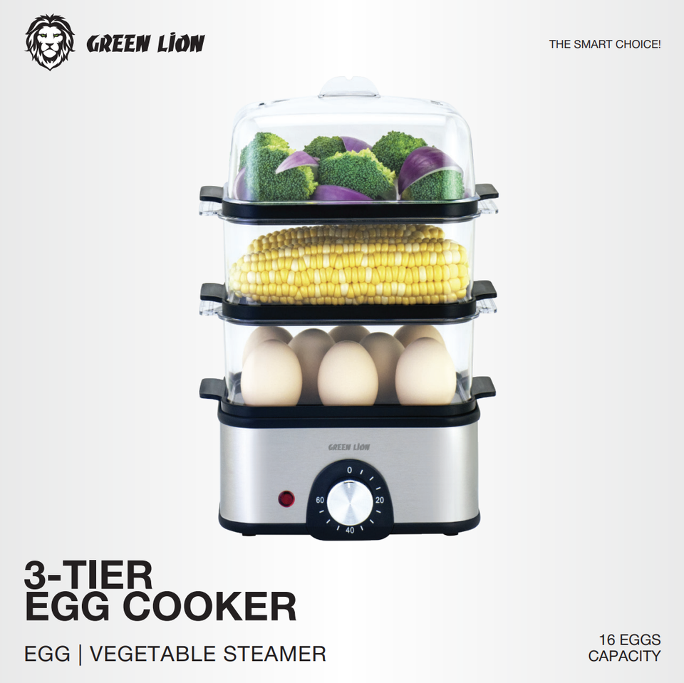Cuiseur à œufs automatique Green Lion à trois couches en plastique 600W avec arrêt automatique pour usage domestique