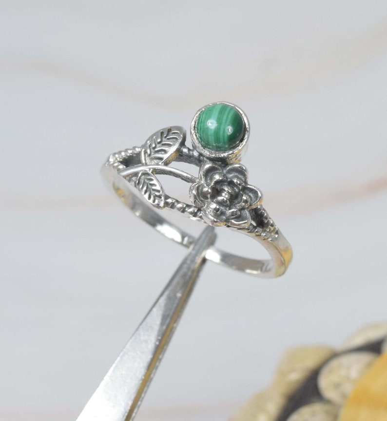 Green Malachite Ring 925 Sterling Silver Handmade Gemstone Flower Ring Designer Jewelry for Women