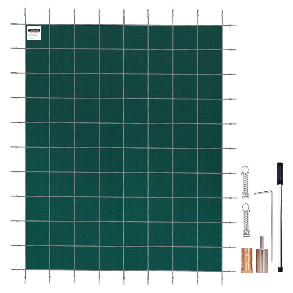 Bâche de sécurité rectangulaire verte en maille solide 14x26 pieds pour piscines enterrées – Idéale pour l'hiver – Couvertures et enrouleurs de piscine