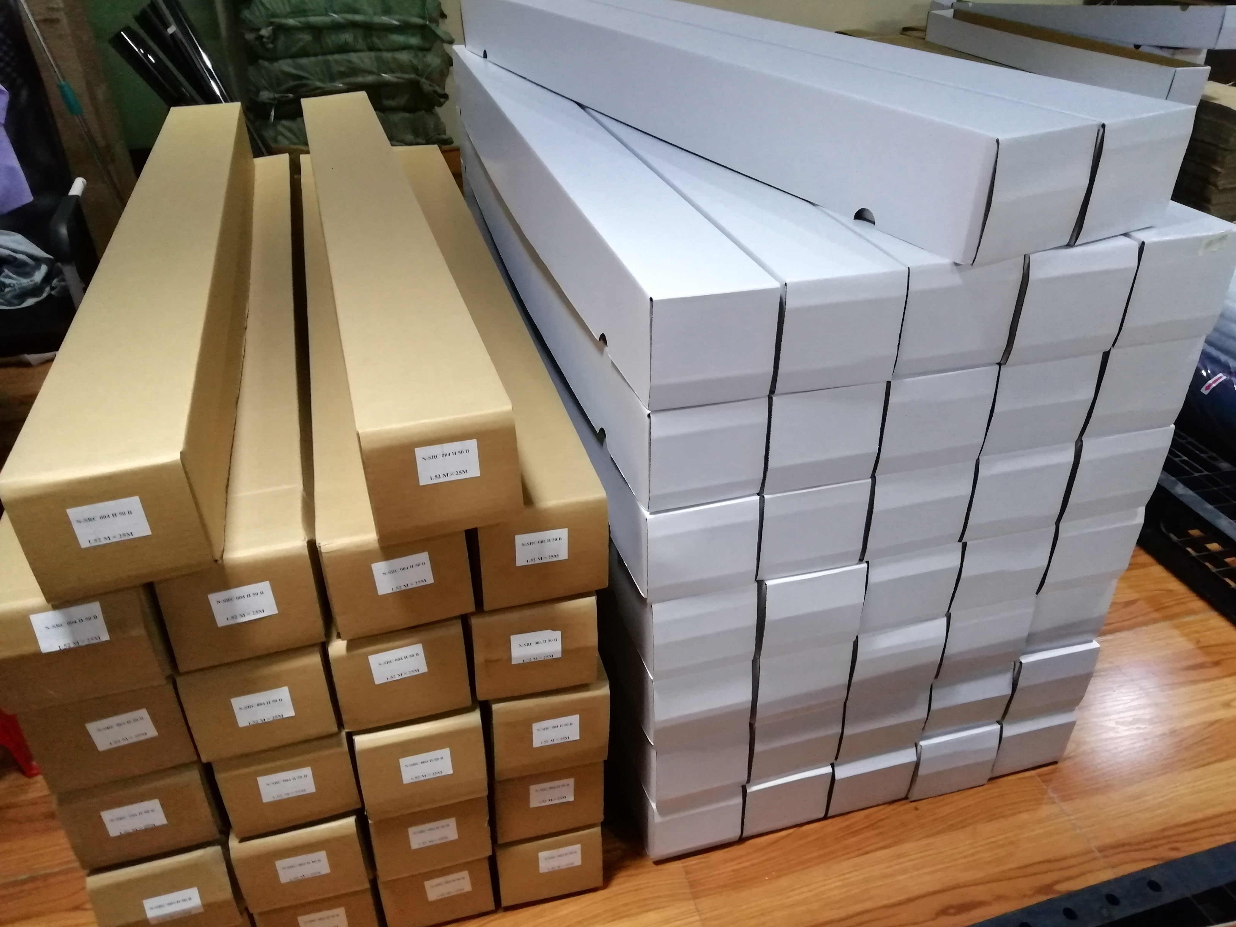 One roll in white box and 4/6/9 boxes in each big carton.