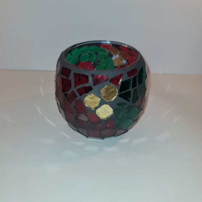 Green Mosaic Home Decoration Handmade Glass Material Gold Mosaic Home Decorative Available Round Candle Jar Votive Holder