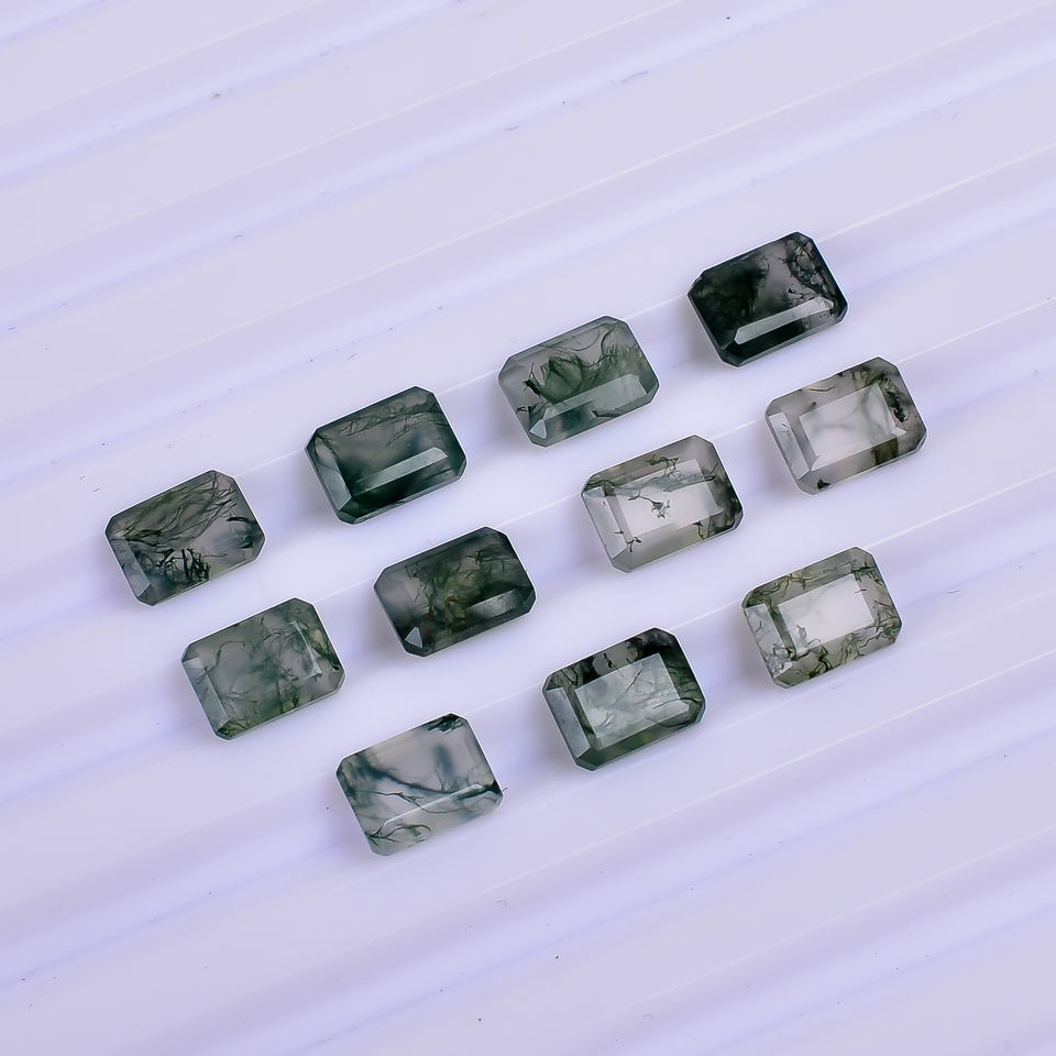 Green Moss Agate Octagon Step Cut Natural 7.0x5.0x3.5 mm High Quality 1.10 Carat Loose Gemstone for Jewelry Making Calibrated