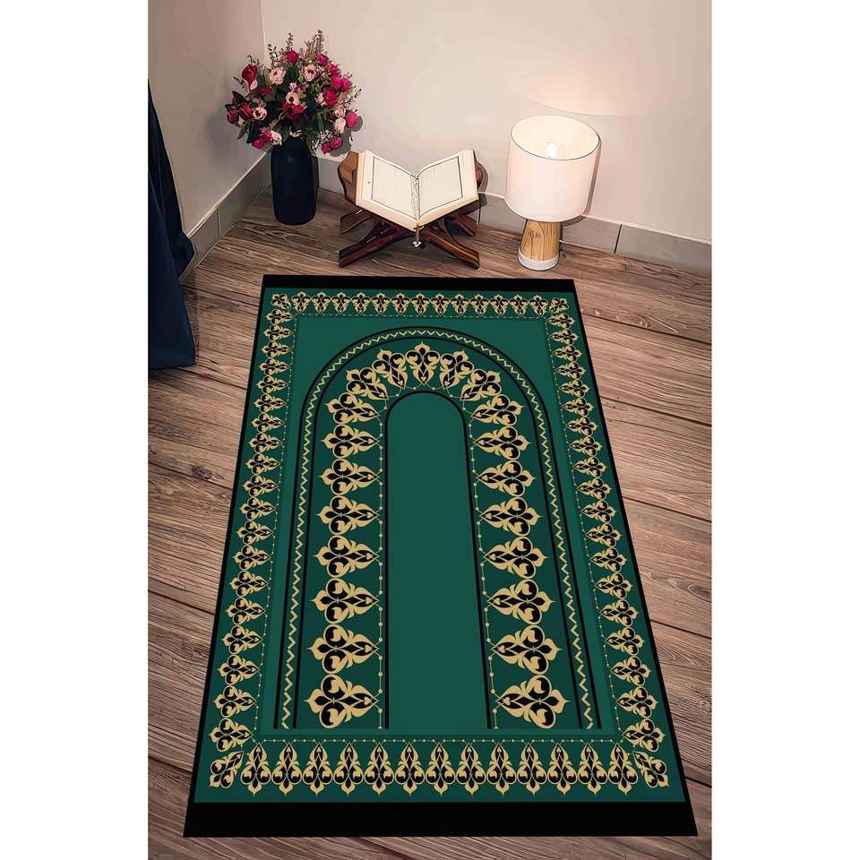 Tapis de prière musulman vert : tapis de culte imprimé en 3D, avec tapis moelleux à poils longs