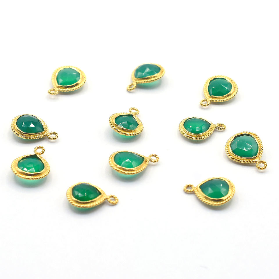 Product Name:Green Onyx Heart Shape Silver Bezel Gold Plated Pendant
