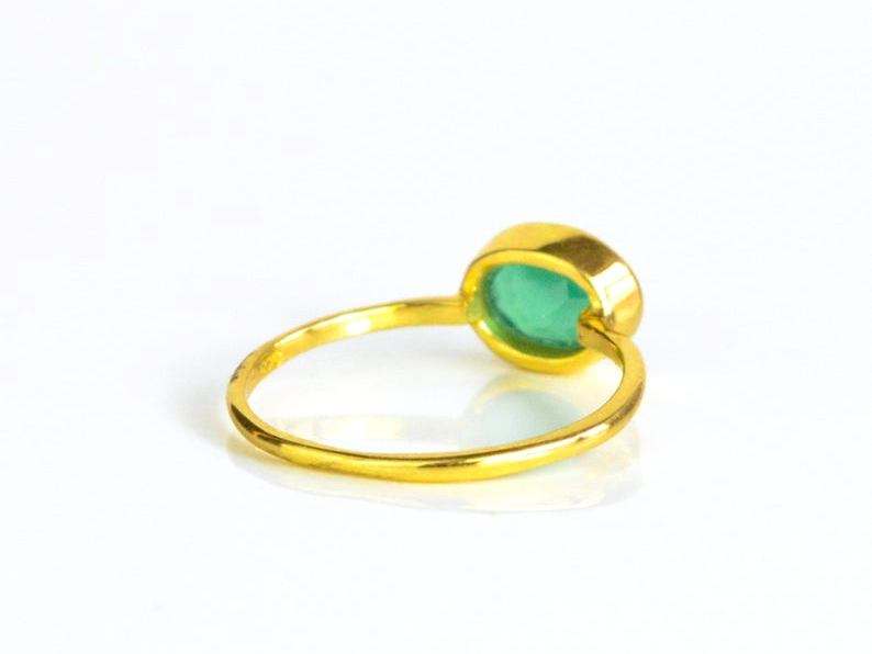 Nom du produit:Bague en Vermeil or sertie de lunette de forme ovale Onyx vert