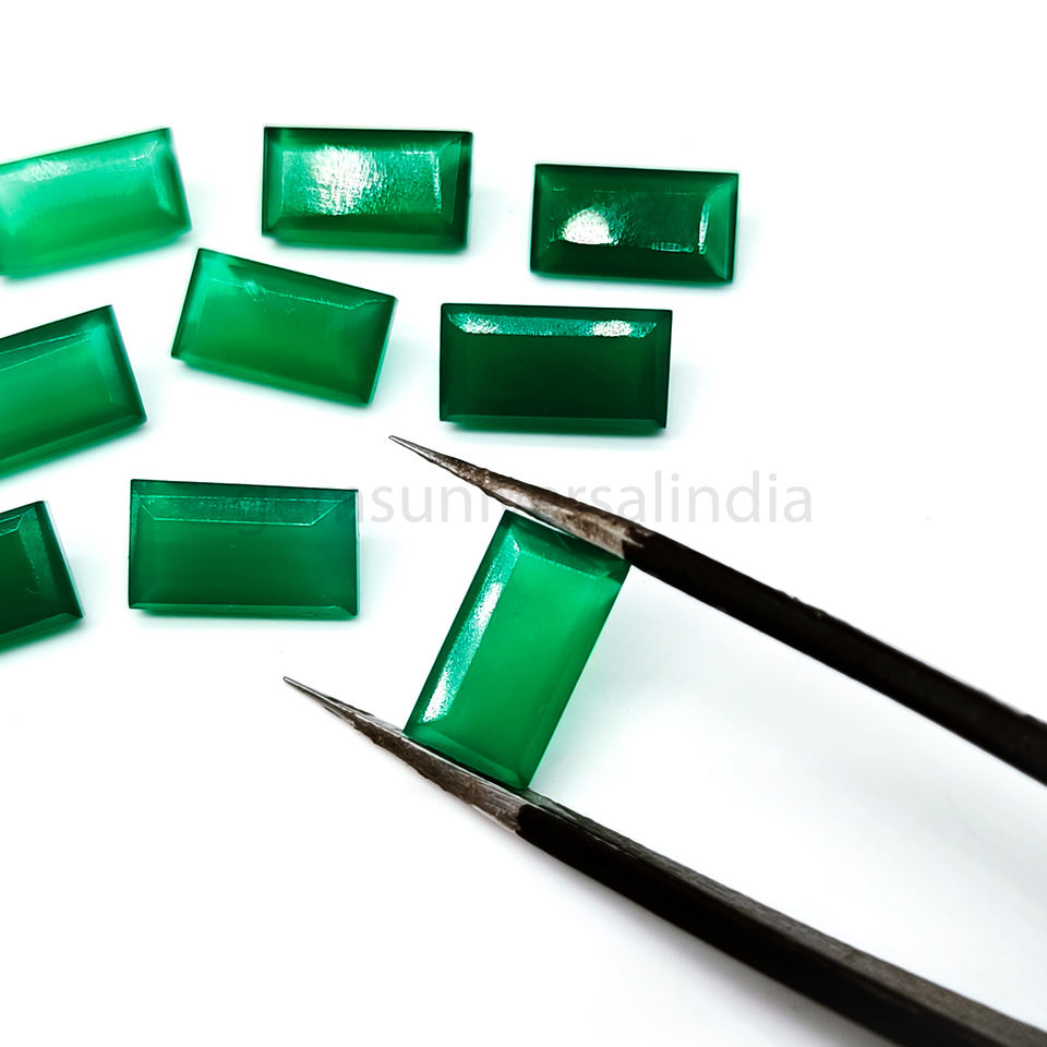Nom du produit:Pierre précieuse en forme rectangle à facettes coupées en onyx vert