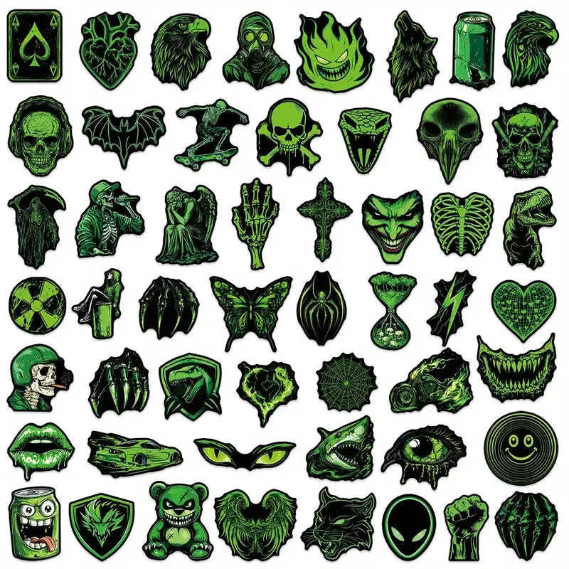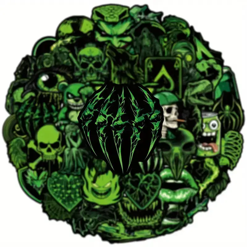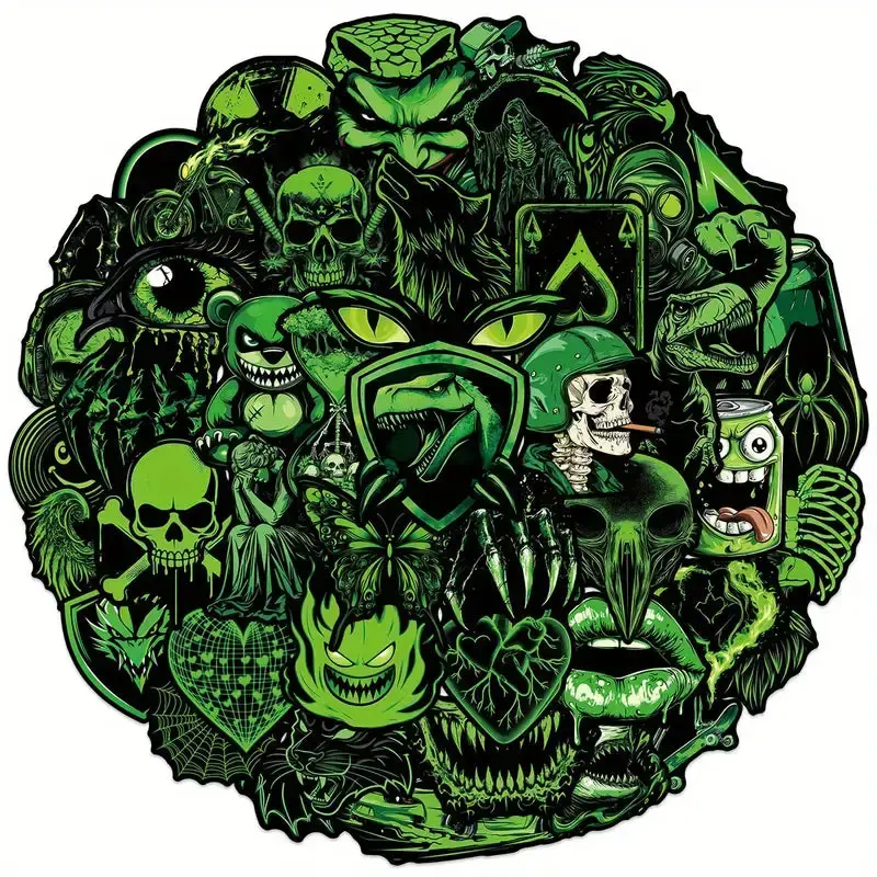 Pack d'autocollants graffiti verts sur le thème du crâne et du monstre (50 pièces)Nom du produit