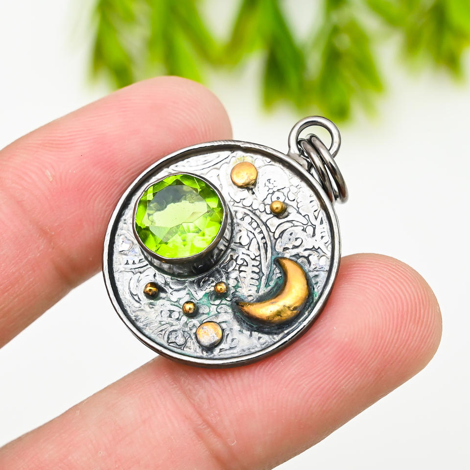 Pendentif en argent sterling créé en laboratoire avec péridot vert, coupe de 10 mm, plaqué argent, pierre précieuse de 1,80 pouce, bijoux de mode, anniversaire de mariage