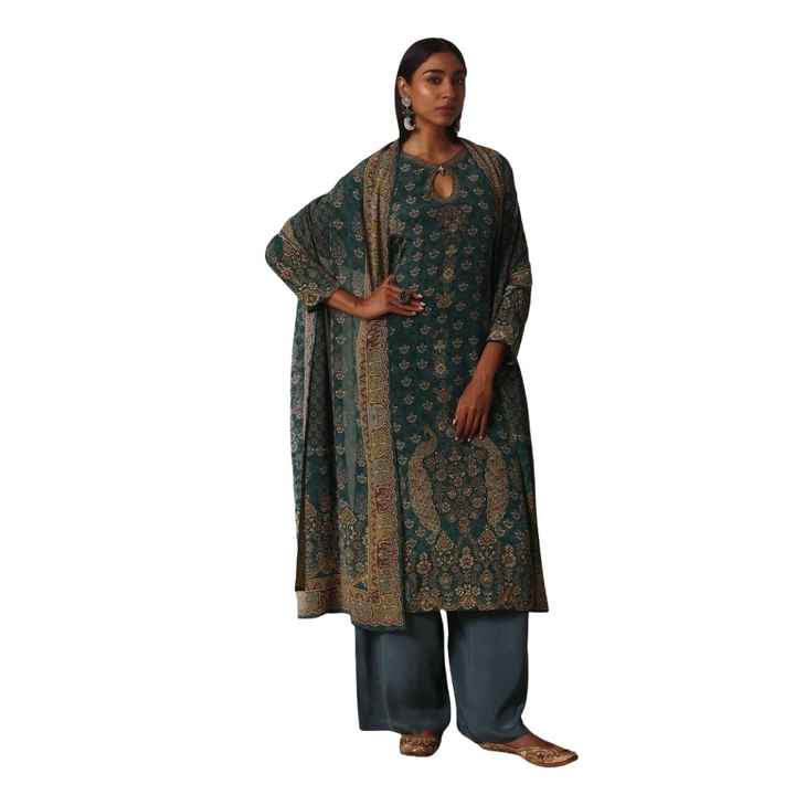 Crêpe imprimé vert avec travail de la pierre Kurta Palazzo ensemble vente en gros de vêtements ethniques pour femmes OEM fournisseur d'usine de vêtements tenue personnalisée