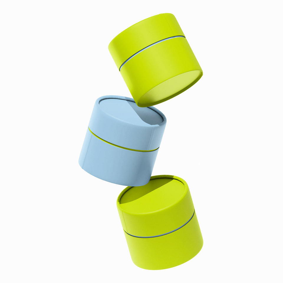 Boîte cylindrique de luxe en carton recyclable, personnalisée et imprimée, avec couvercle et base, pour emballage cadeau de thé en sachet ou de bouteille alimentaire.