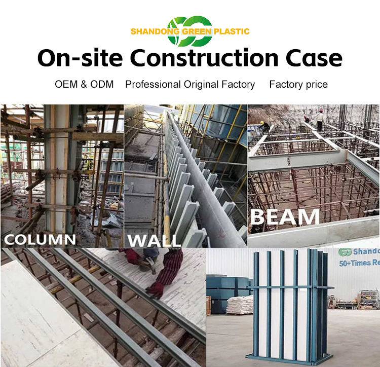 Panneau de coffrage en PVC vert réutilisable, taille ajustable, haute résistance, pour la construction de villas en béton, facilement écologique