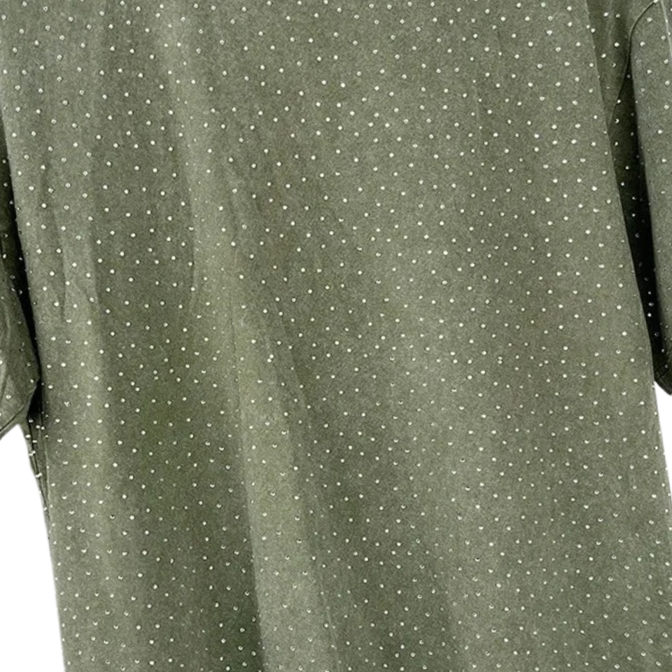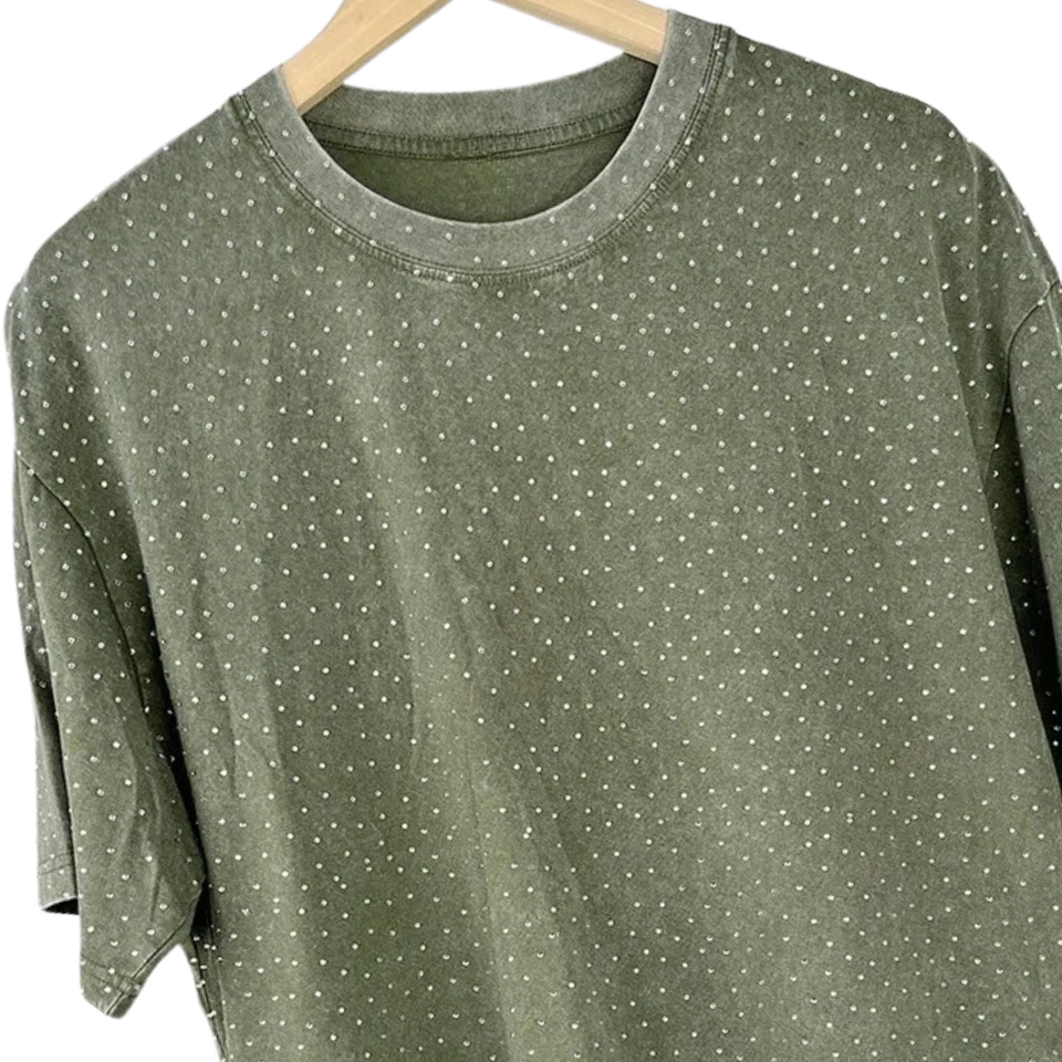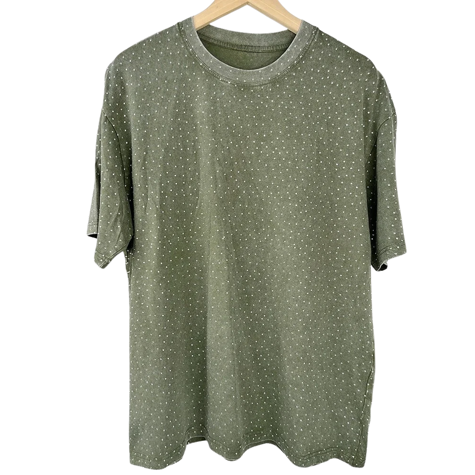 T-shirt unisexe surdimensionné en strass vert, mode de luxe, tee-shirt clouté de cristaux, qualité supérieure, logo personnalisé, OEM ODM, usine en gros
