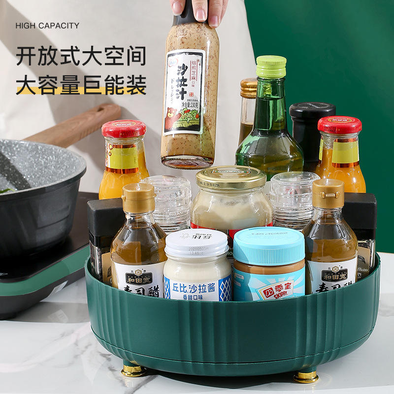 Plateau de rangement rond vert taille L sans couvercle, plateau à fruits rotatif pour la cuisine, porte-épices multifonctionnel