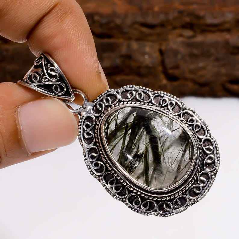 Pendentif en quartz rutile vert fait main, argent sterling 925, style bohème, bijou en pierre précieuse, cristal de guérison, cadeau pour elle