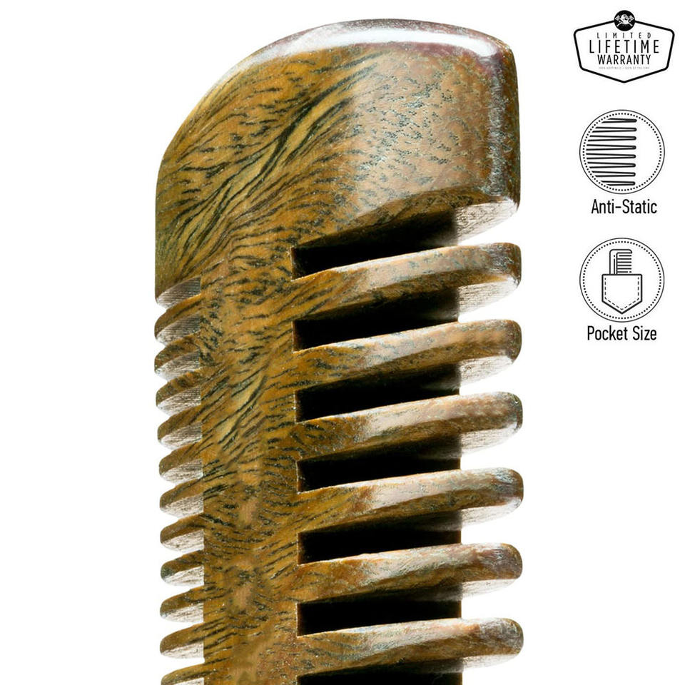 Green Sandalwood Fine-Toothed Beard Styling Comb with Thick Leather Case for Mustache Combing