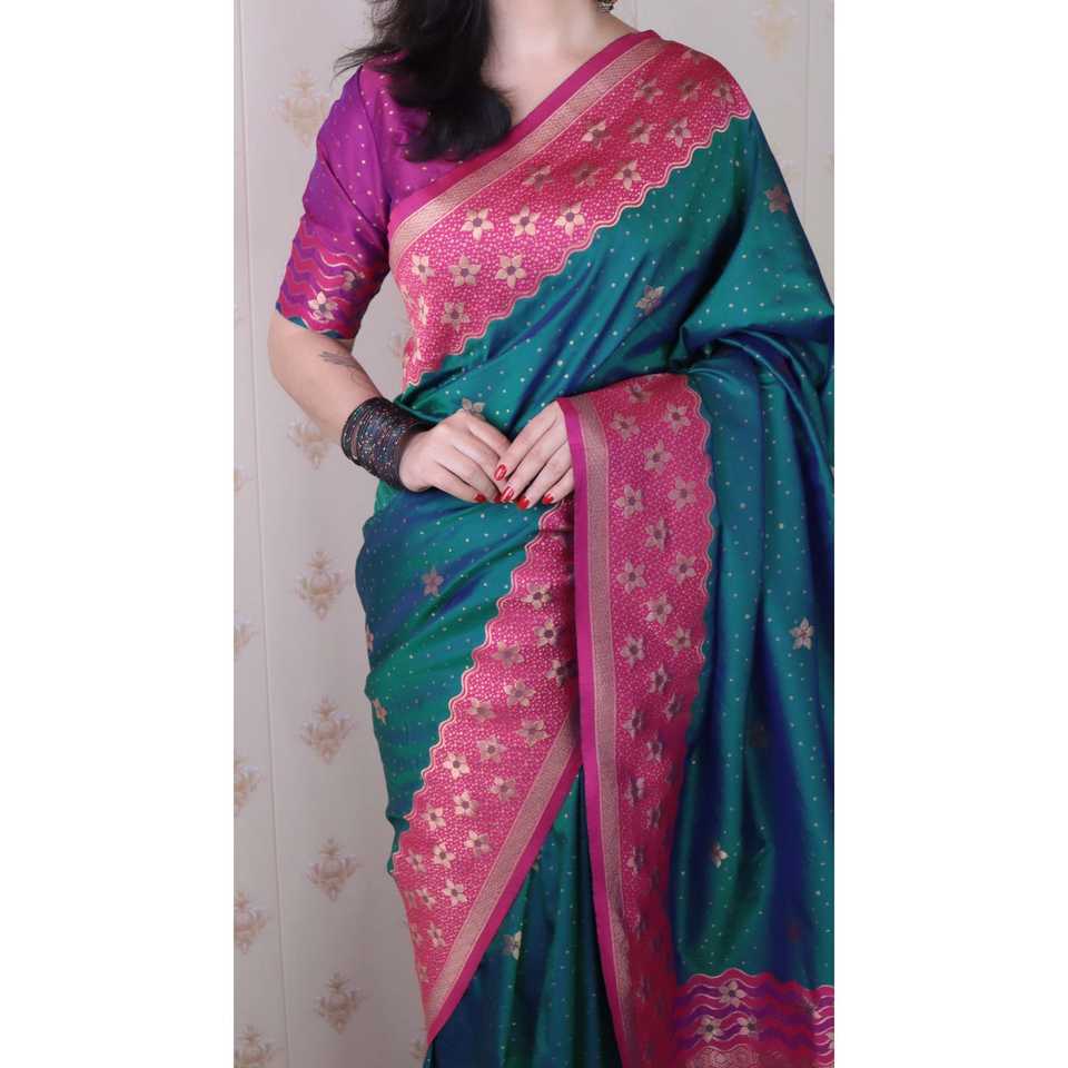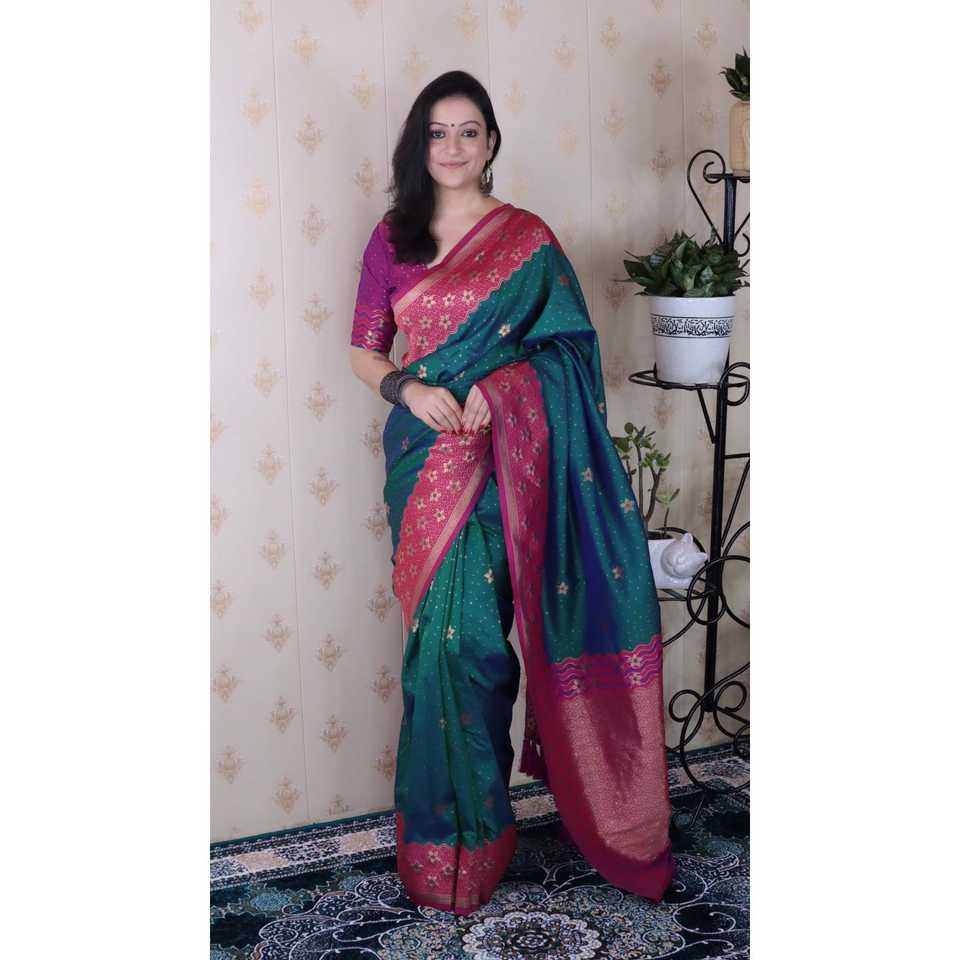 Green Soft Silk Banarasi Wavy Unique Zari Woven Saree Traditional Chinese Clothing Elite Weaves 650g