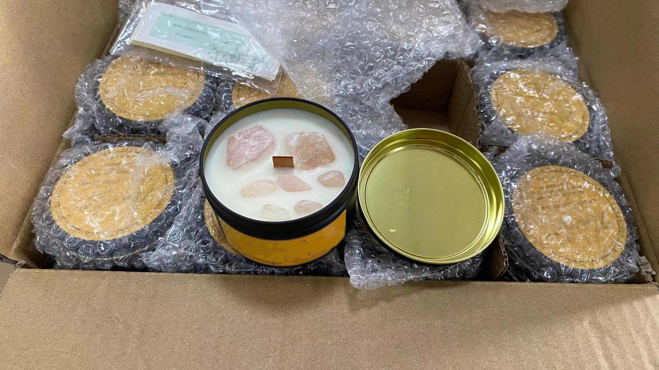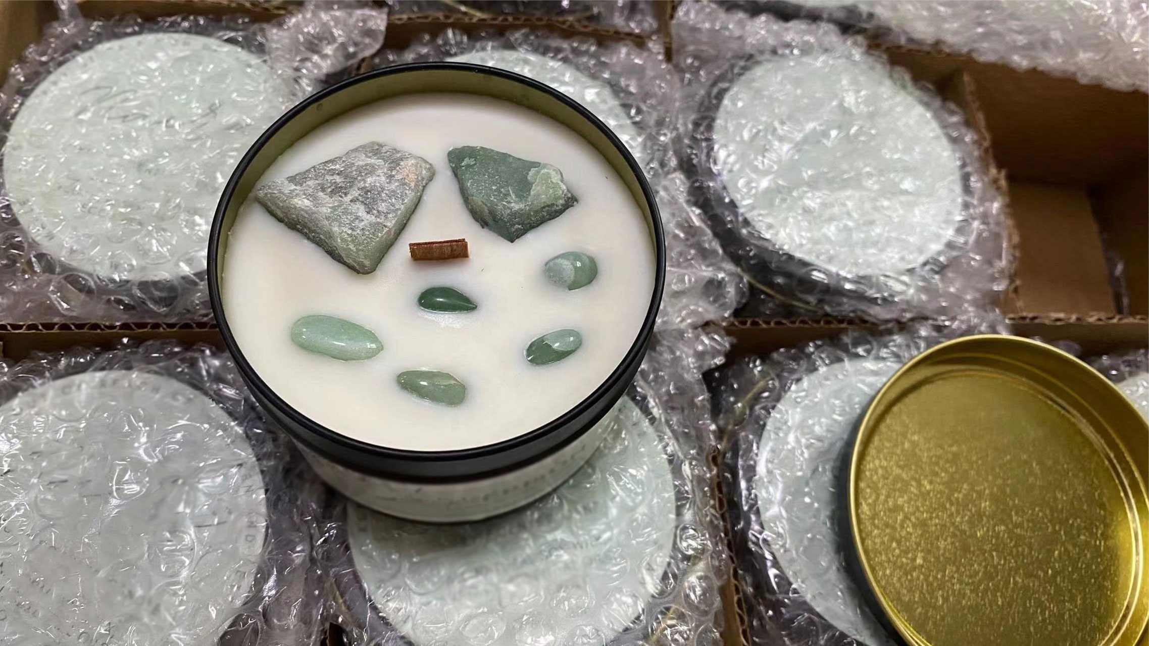 Nom du produit:Thé vert parfumé étain bougie Aromathérapie cristal bougies bois mèche
