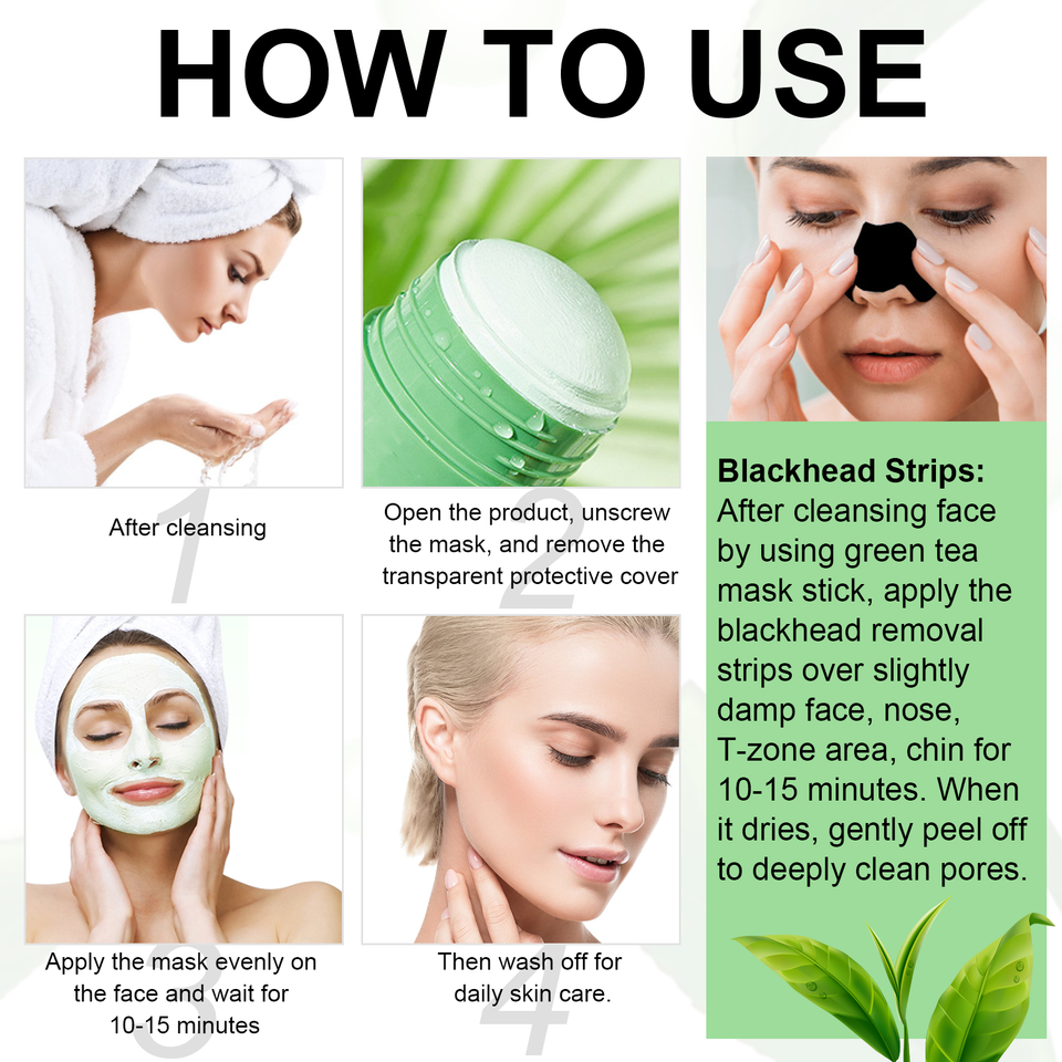 Crème éclaircissante pour la peau au thé vert Masque visage et corps Stick Masque nettoyant purifiant pour le nez et les mains