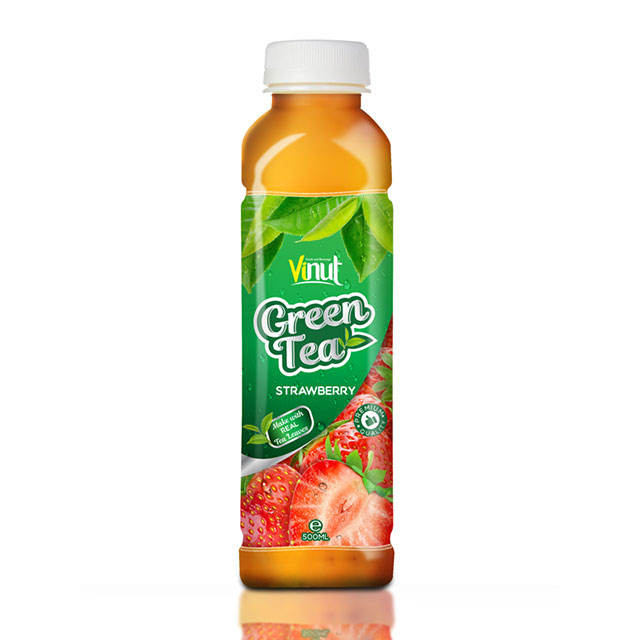 Thé vert fraise 500ml thé boisson VINUT 24 bouteilles carton bouteille pet sans sucre OEM ODM marque privée échantillon gratuit rafraîchissant
