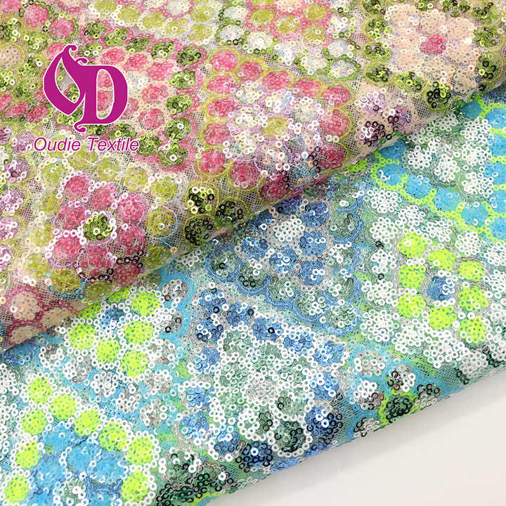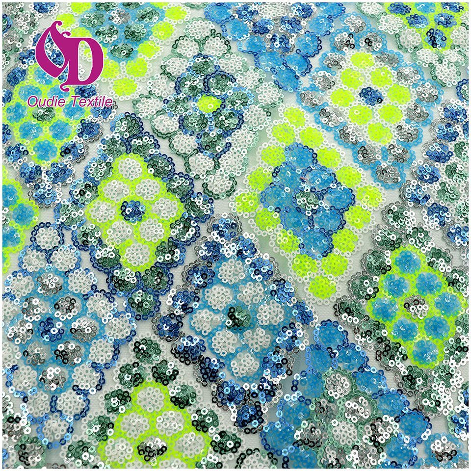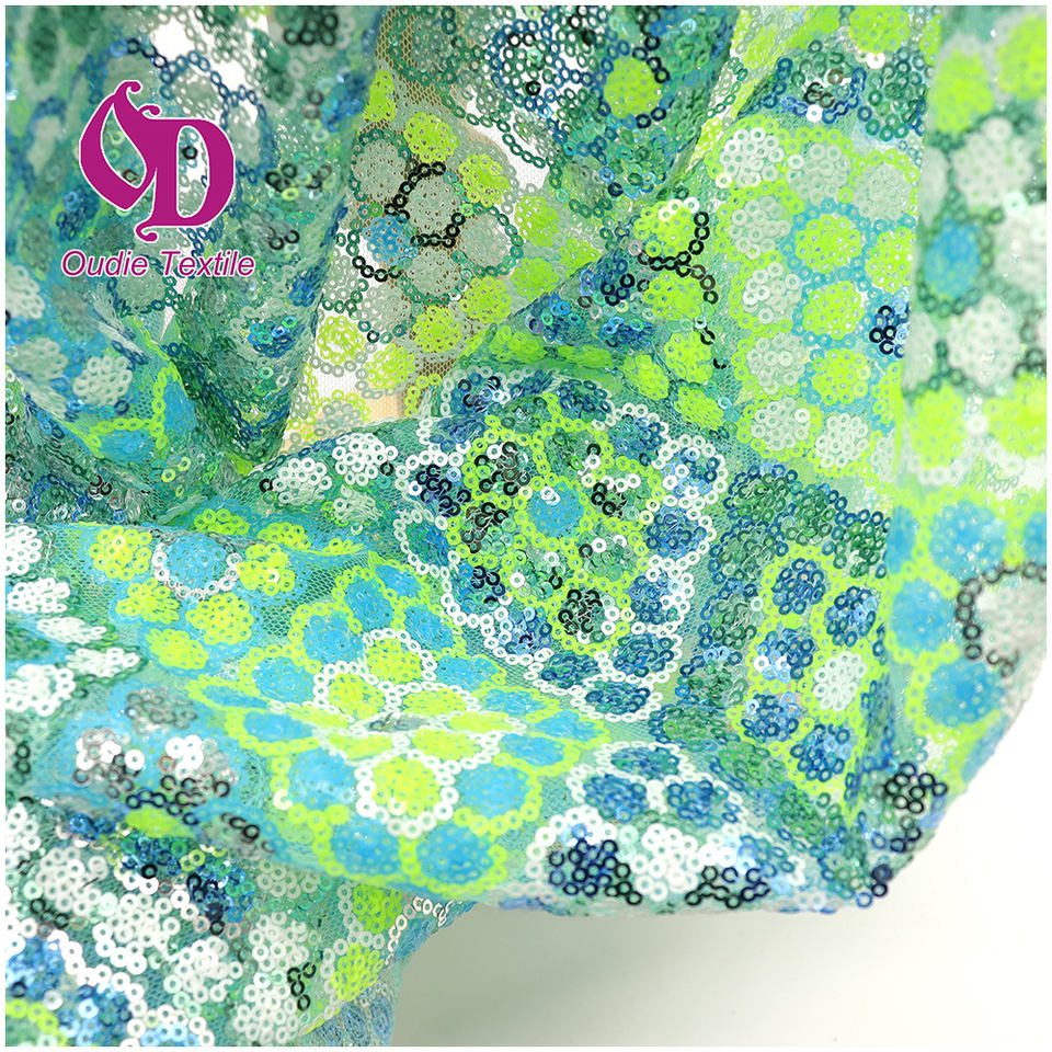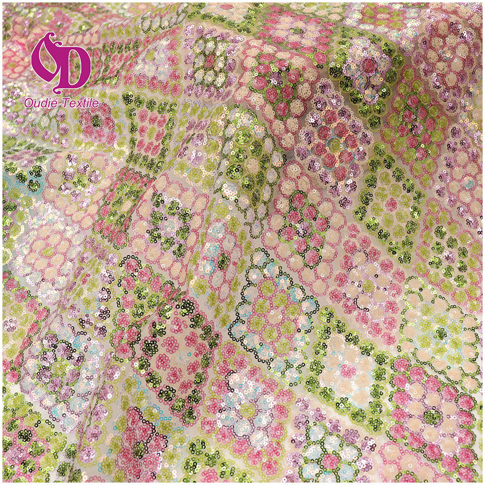 Tissus à paillettes en filet brodé plat vichy transparent vert tissu à paillettes en maille de dentelle du monde pour vêtements et accessoires pour femmes
