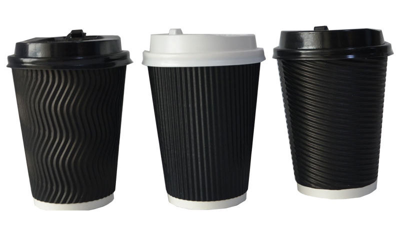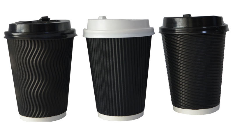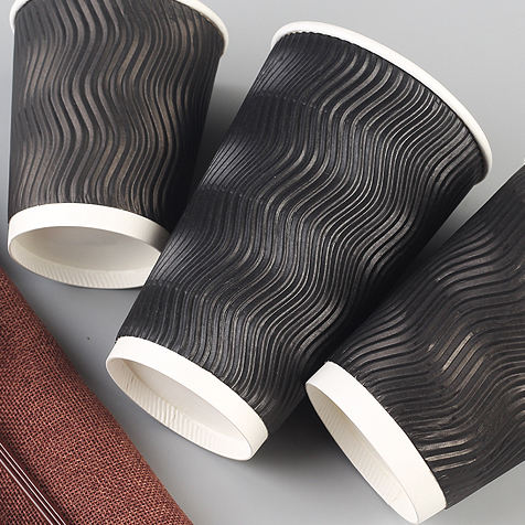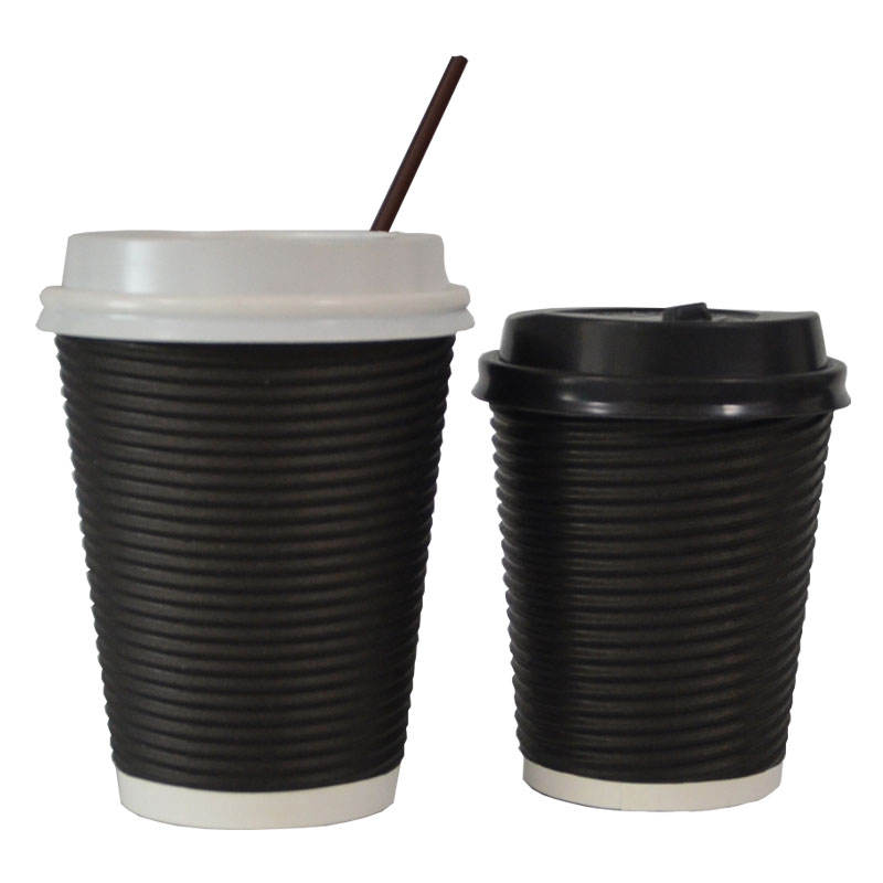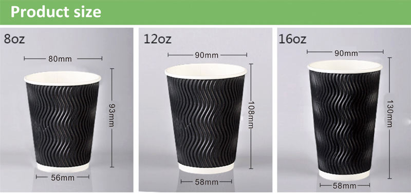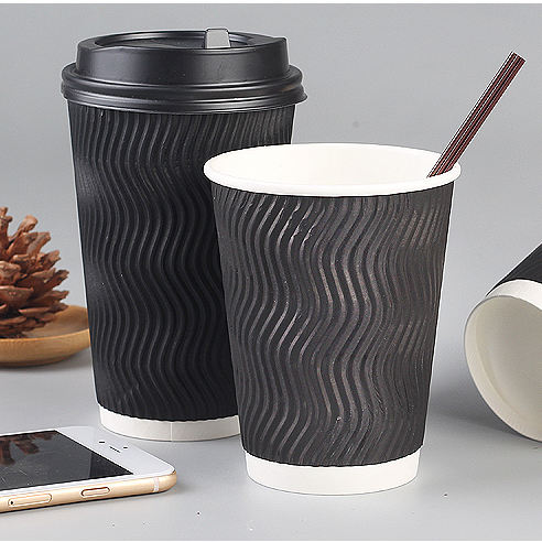 Green Treasure MY 16oz Black Ripple Wall Carton Paper Cup with Cover Custom Printed logo