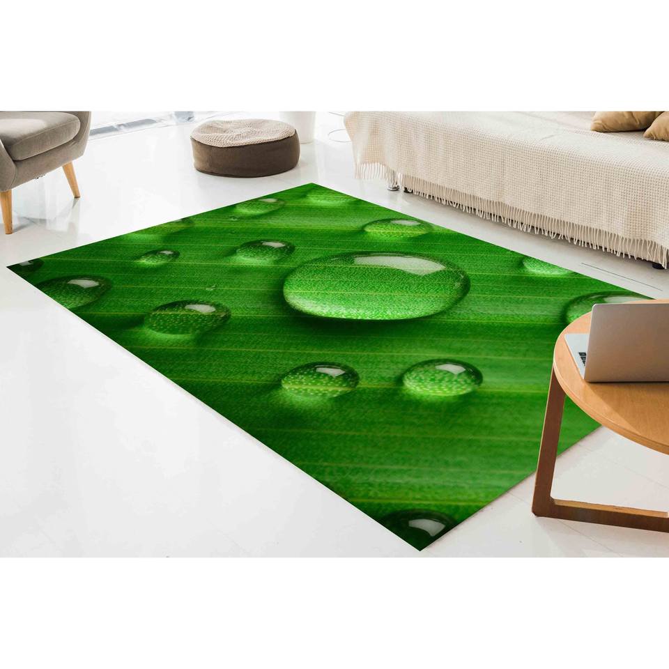 Tapis Goutte d'Eau Vert : Tapis de Couloir Style Ferme Botanique, Tapis Imprimé, Tapis en Chenille