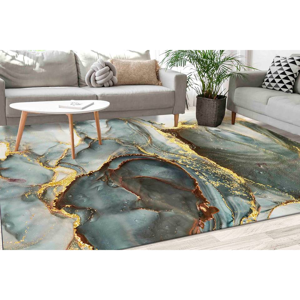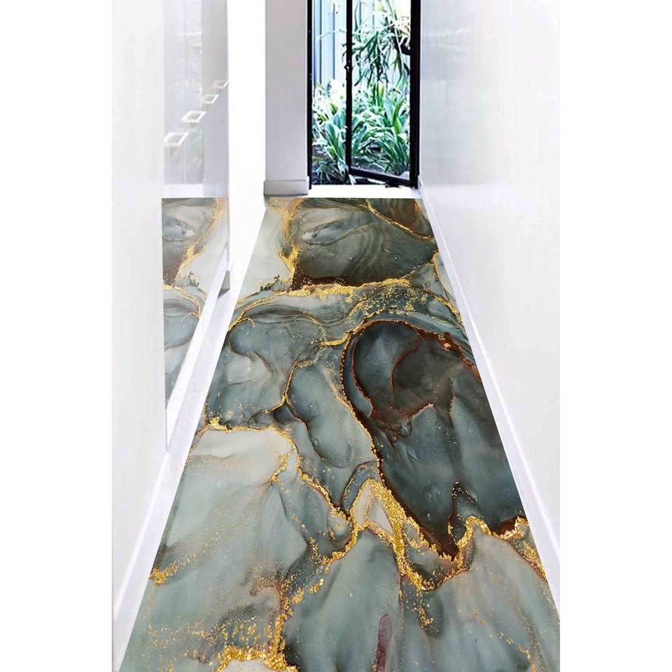 Tapis en marbre vert et or : Tapis d'appoint moderne antidérapant, tapis en chenille
