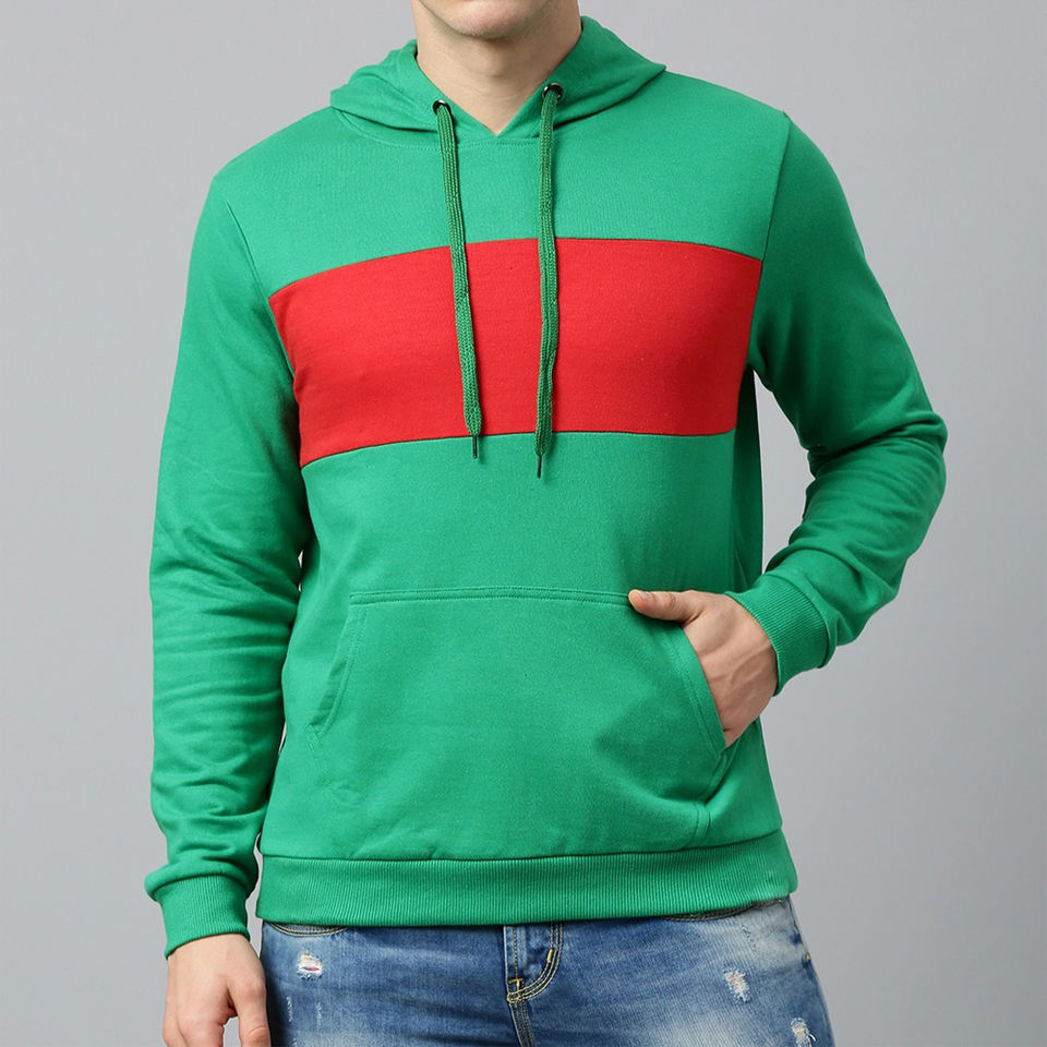 Sweat-shirt coloré à manches longues, chandail noir, vert et rouge, avec un capuche, poche kangourou, à ourlet droit
