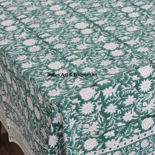 Vert Gadh Jaal Main Bloc Imprimé Coton Nappe De Table À Manger Nappe En Gros Fait À La Main Coton Couverture De Table