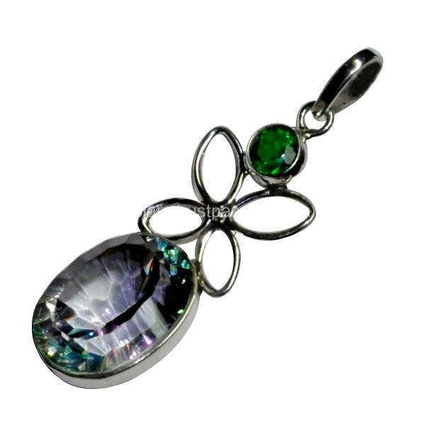 Stone name:Green quartz & Mystic topaz