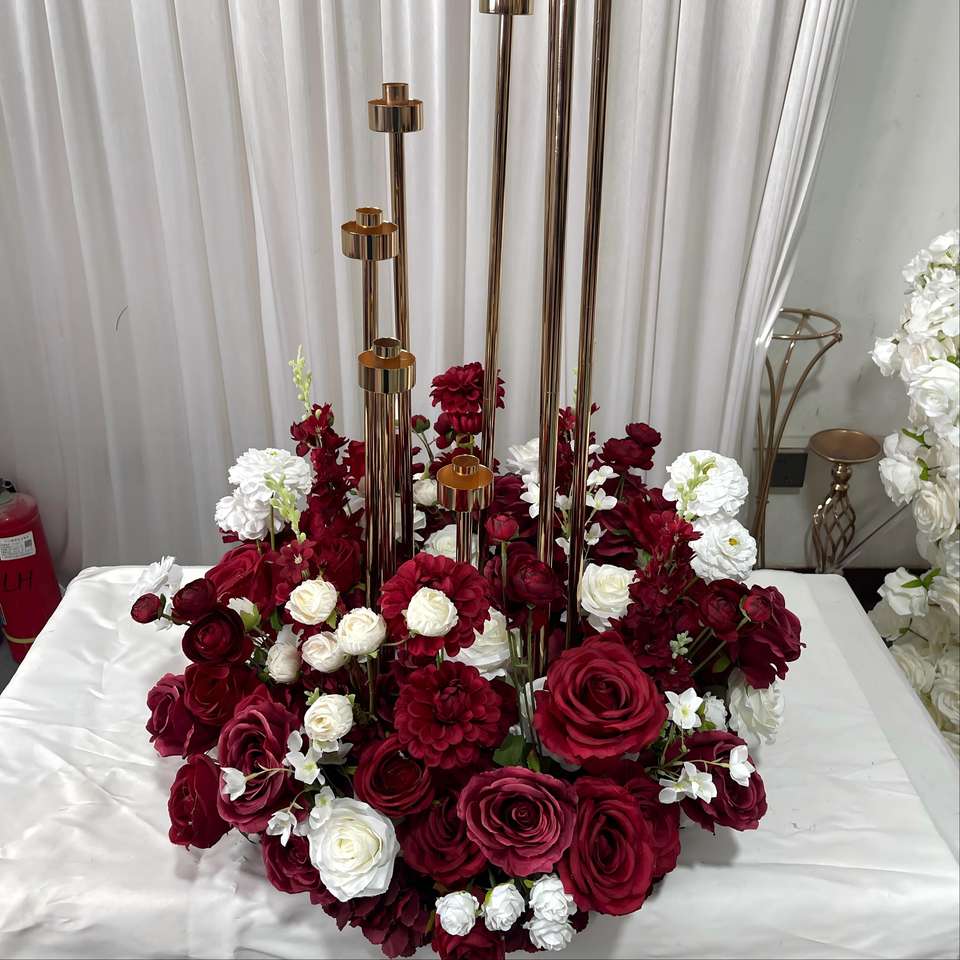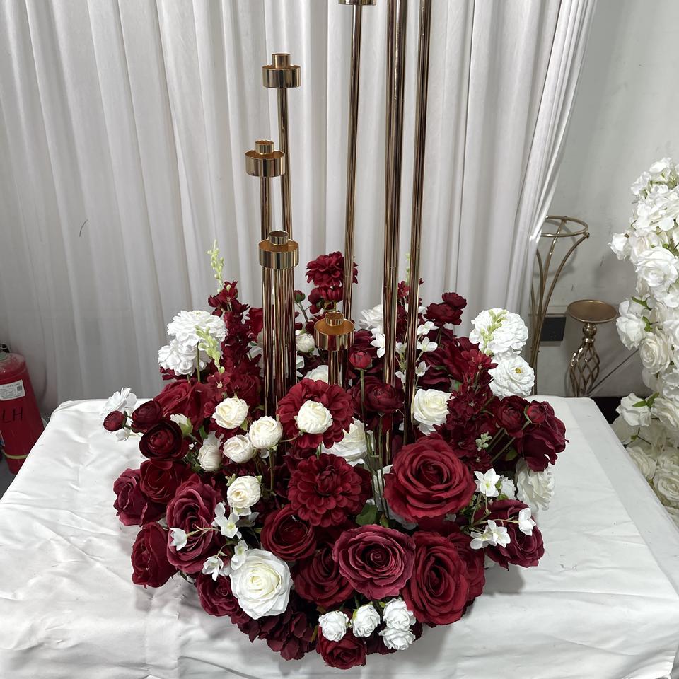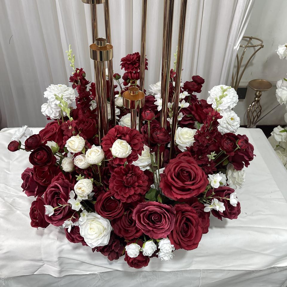 Centre de table GreenLife en fleurs artificielles rouge vin et blanc, sélection rigoureuse, personnalisable, 60 cm, pour la décoration de table de banquet