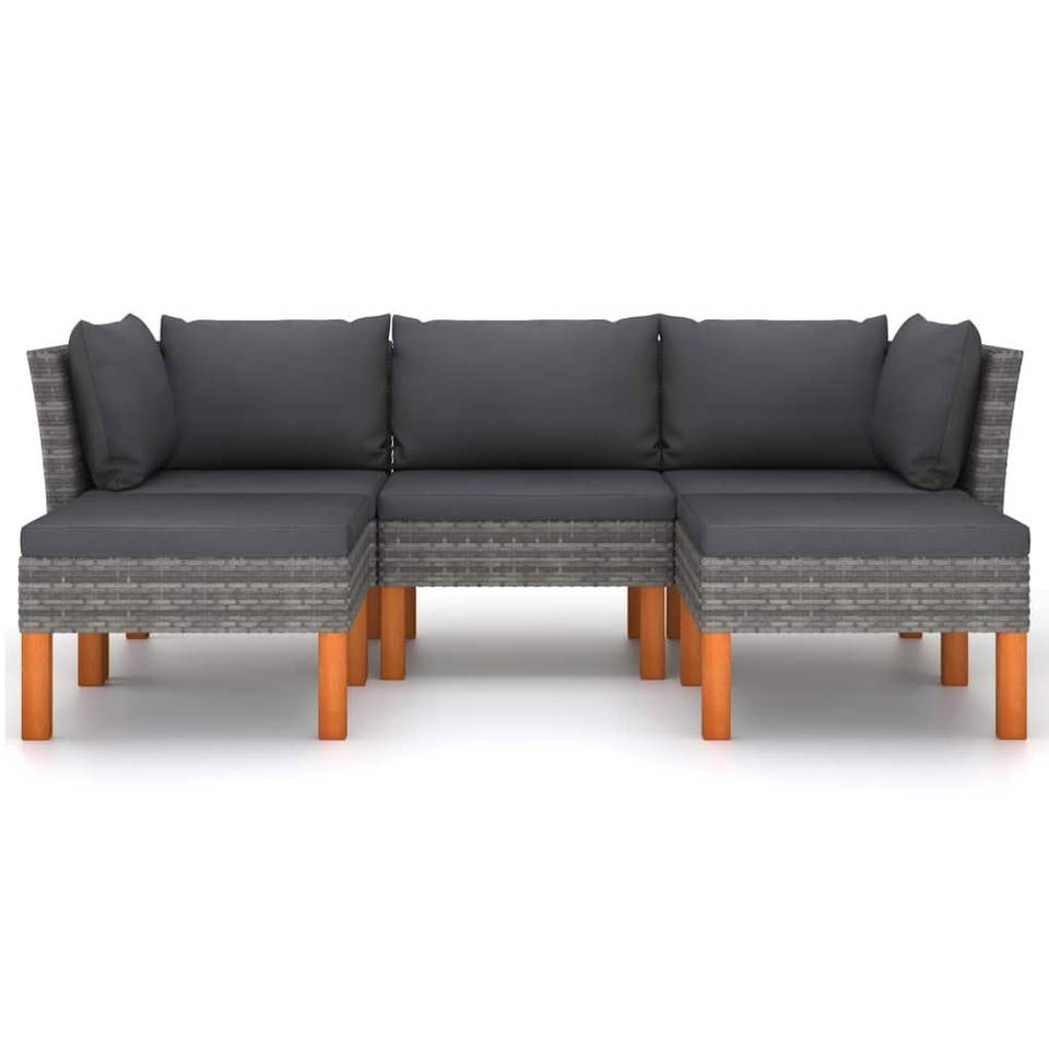 Ensemble de salon de jardin en rotin gris et anthracite 6 places, mobilier d'extérieur au design contemporain, structure en teck