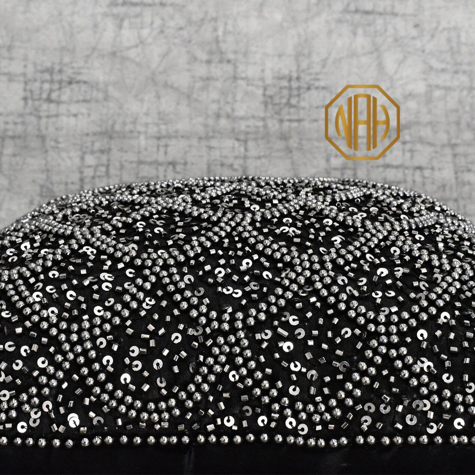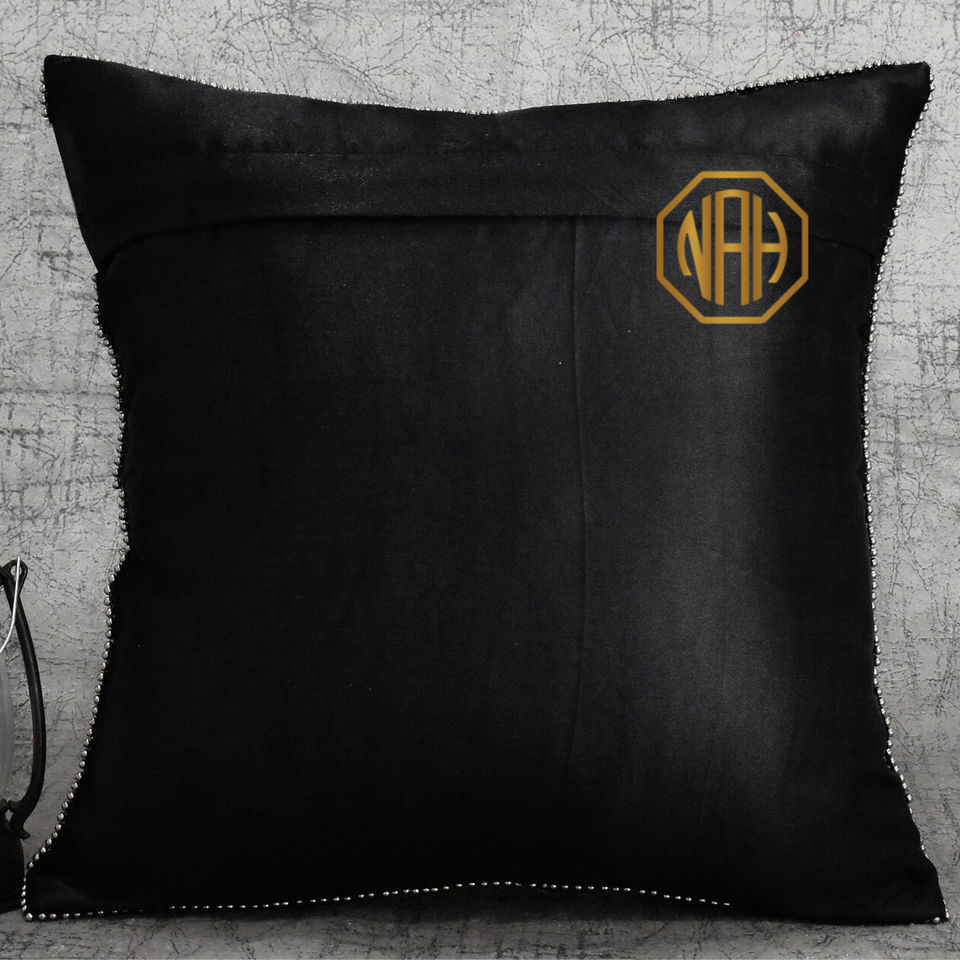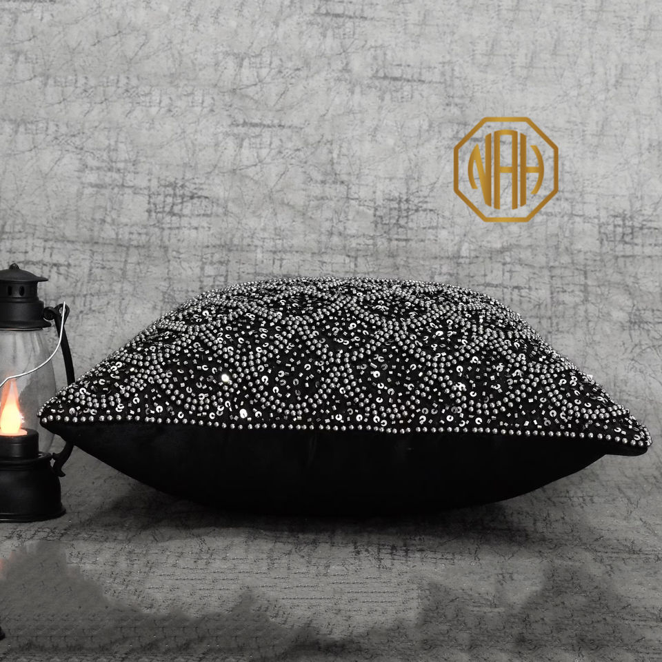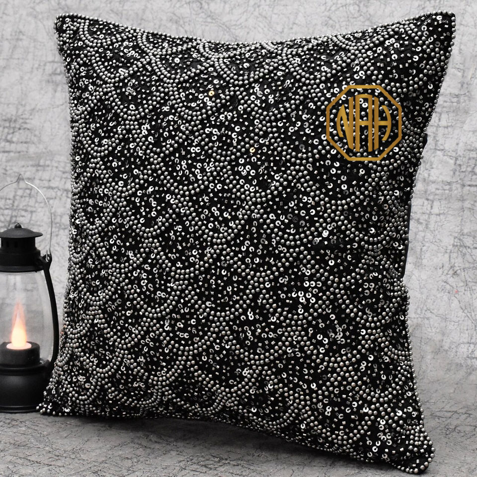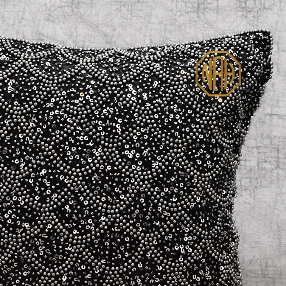 Gris noir perlé taie d'oreiller perle paillettes à la main brodé housse de coussin usine personnalisé luxe Accent vente en gros exportation