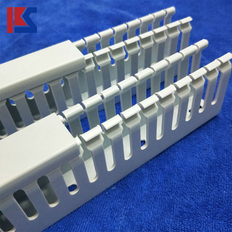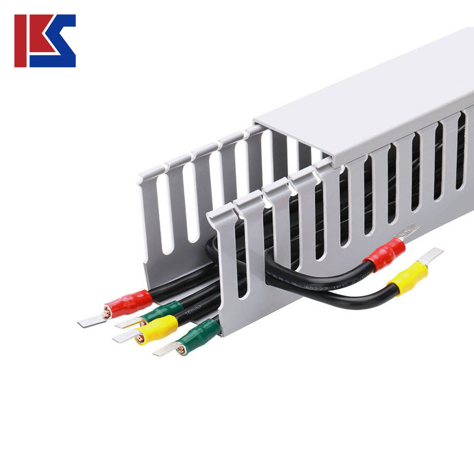 Goulotte de câbles grise, goulotte de câbles en plastique, conduit électrique, goulotte de câbles à fentes