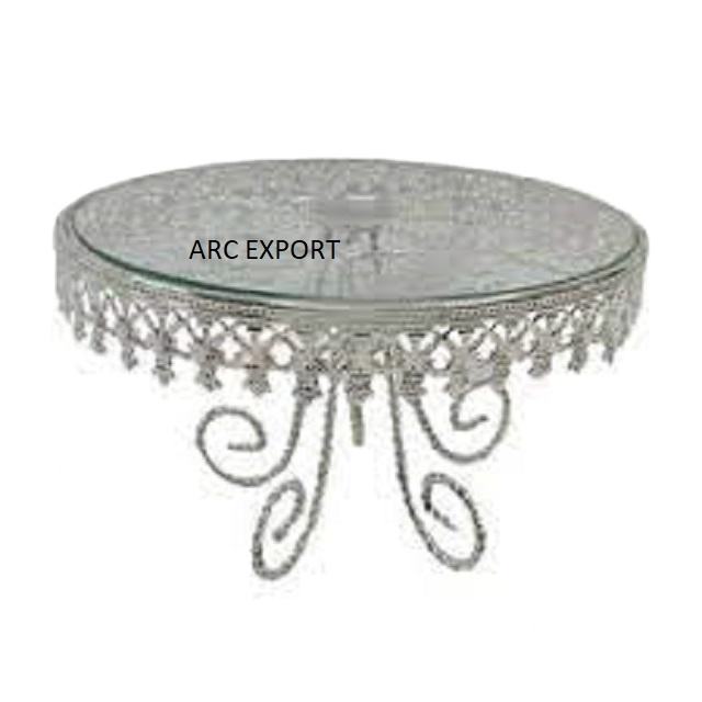 Support à gâteau de présentation de table en métal galvanisé, couleur gris brillant, accessoires de décoration fantaisie, design rond