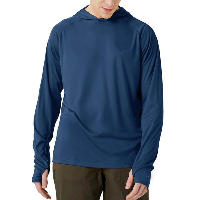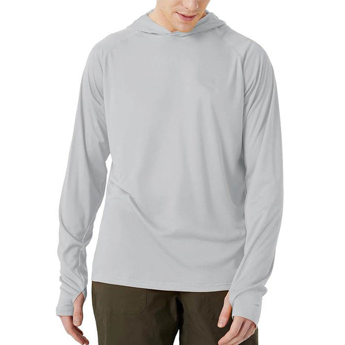 Grey Custom UV Protection Fishing Hooded Shirts Men Quick Dry Breathable Sports Shirt Plus Size Fishing Hooded Shirt