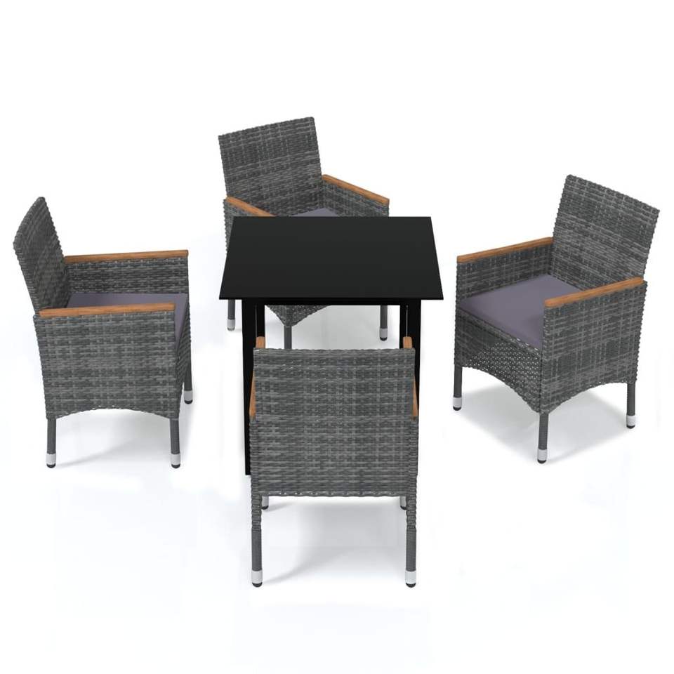 Ensemble de salle à manger de jardin en rotin gris 4 places, résistant aux intempéries, mobilier d'extérieur de style contemporain