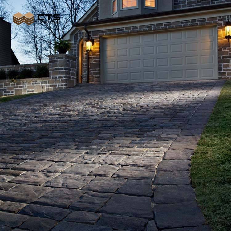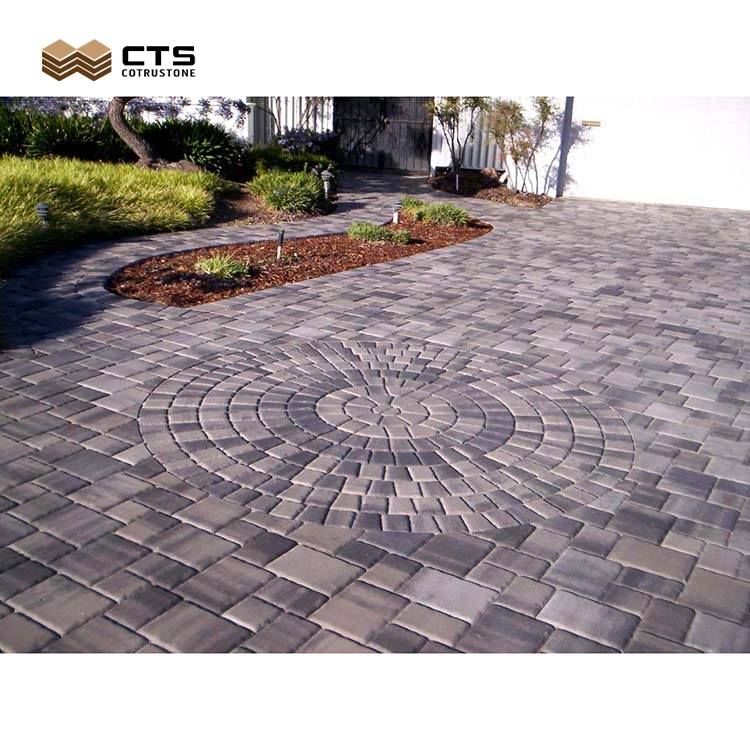 Dalles de pavage en granit gris flammé naturel pour allée paysagère