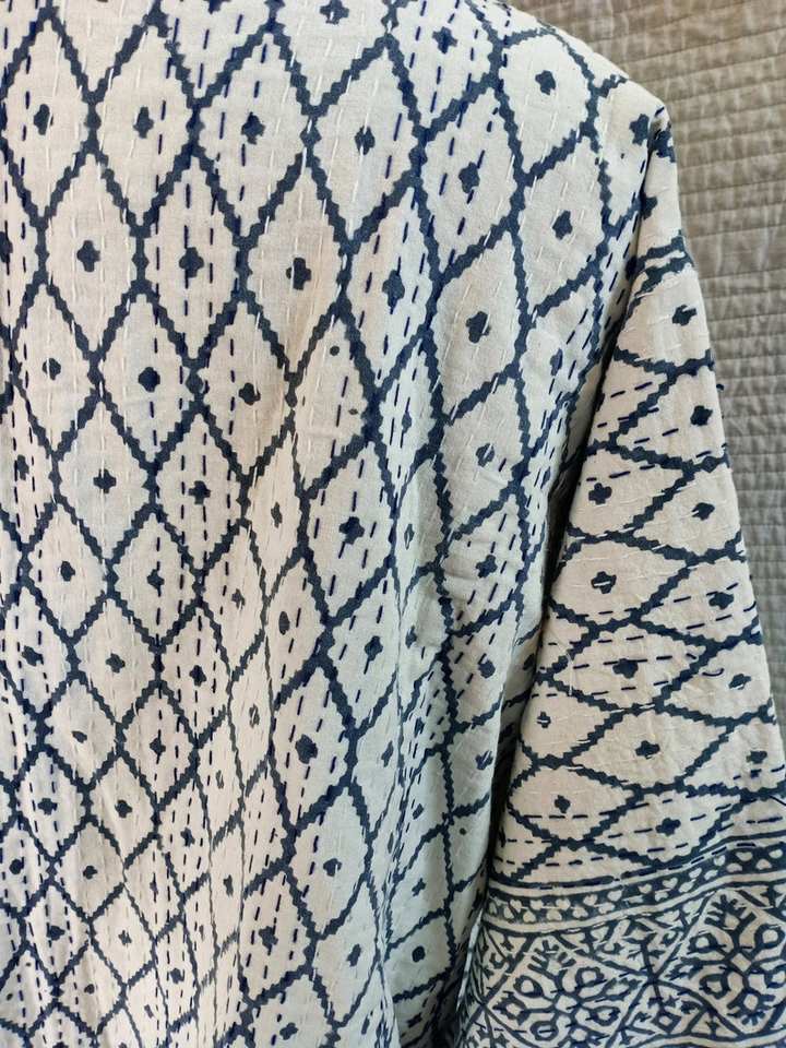 Veste Kantha à manches longues pour femme, imprimé Floral, gris, mode d'hiver